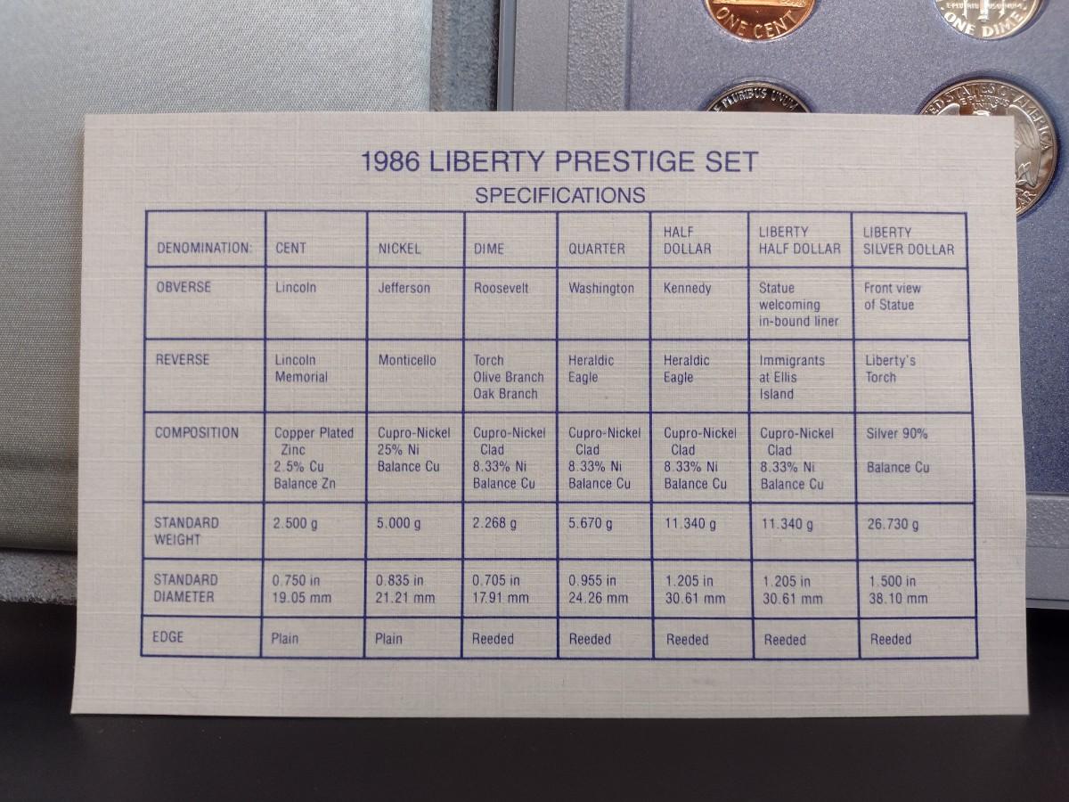 1986 U.S. Mint Liberty Prestige Proof Coin Set (#1)