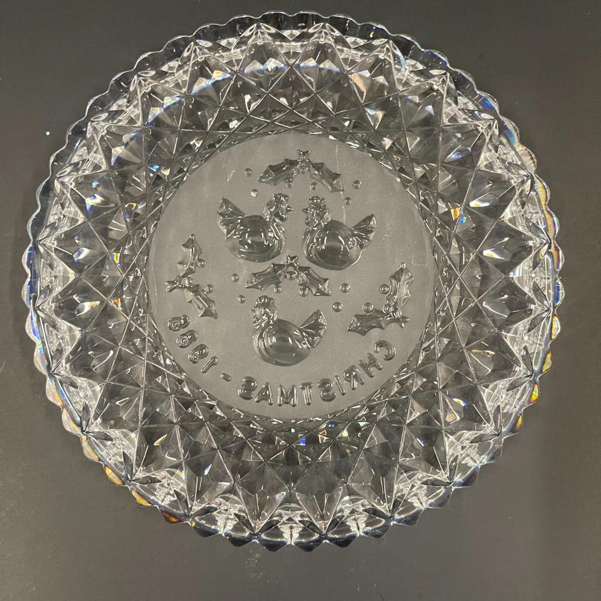Vintage Waterford 1986 Christmas crystal plate from the 12 Days of Christmas collection. This one is day 3, Three French Hens. Plate is 8" diameter with a 1" tall rim. Excellent condition.