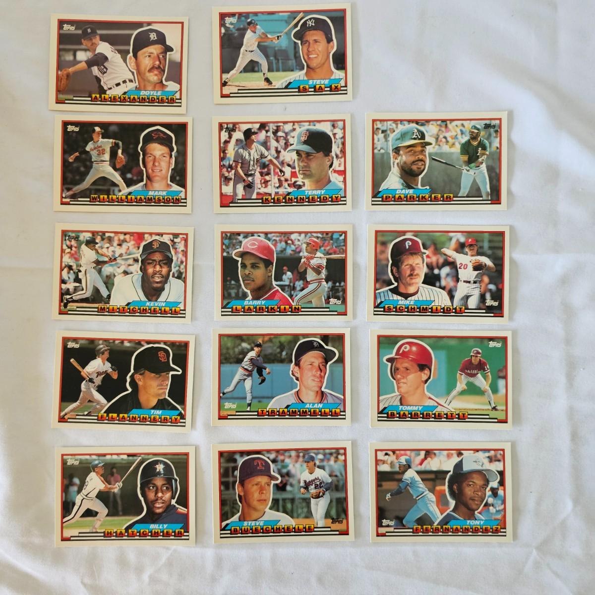 Topps selection of cards from 1987, 1988 and 1989, all in sleeves and in binders. A small selection of 1989 Topps Big cards in here also, about 14 items. Cards are not graded or appraised. All three years have approximately 786 items in each binder. See photos for details. Shipping available. All sales are final. No returns or refunds. Please bid accordingly.