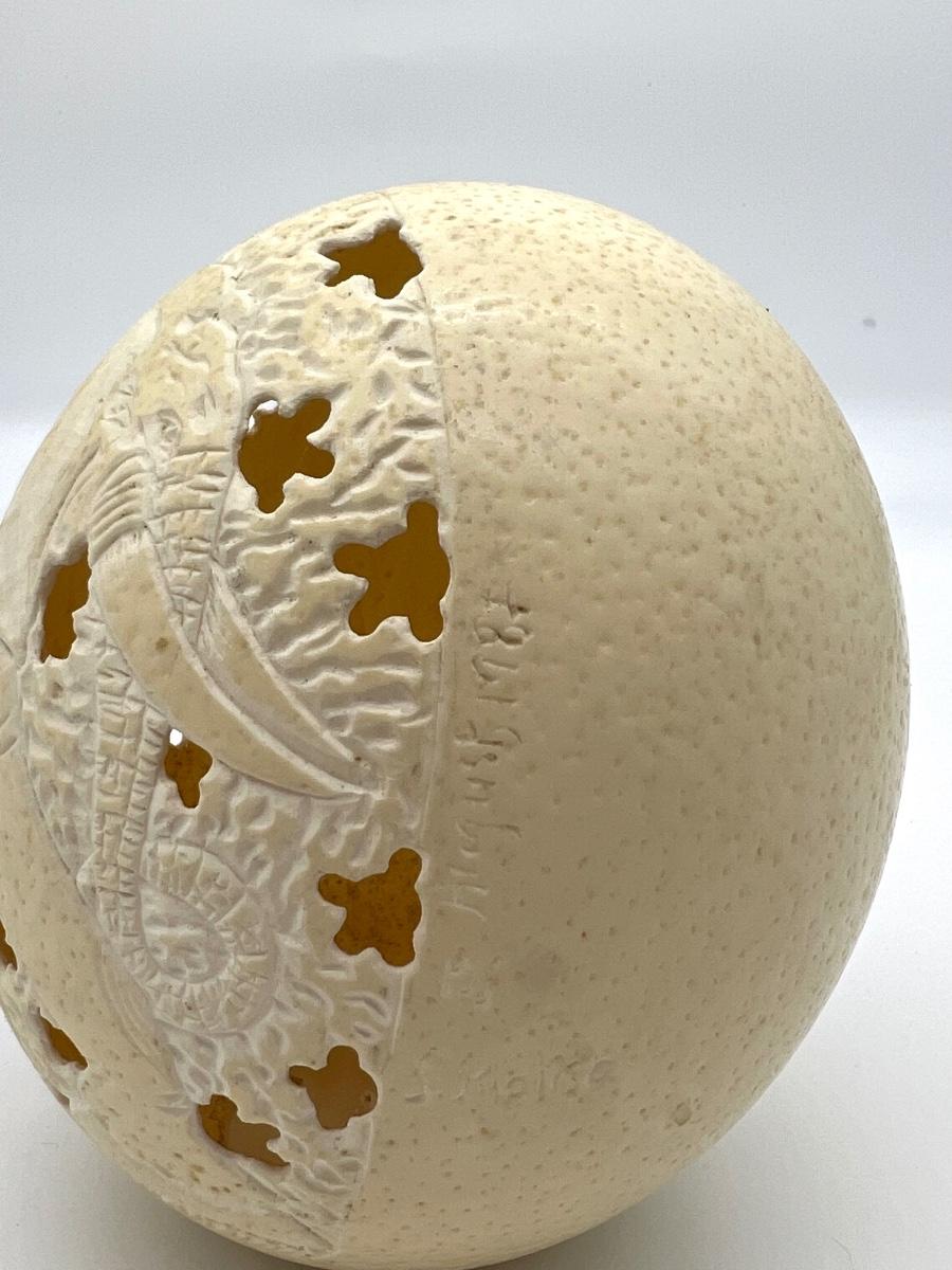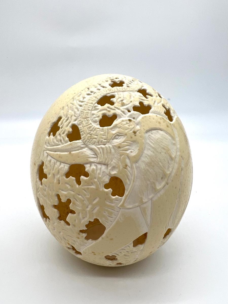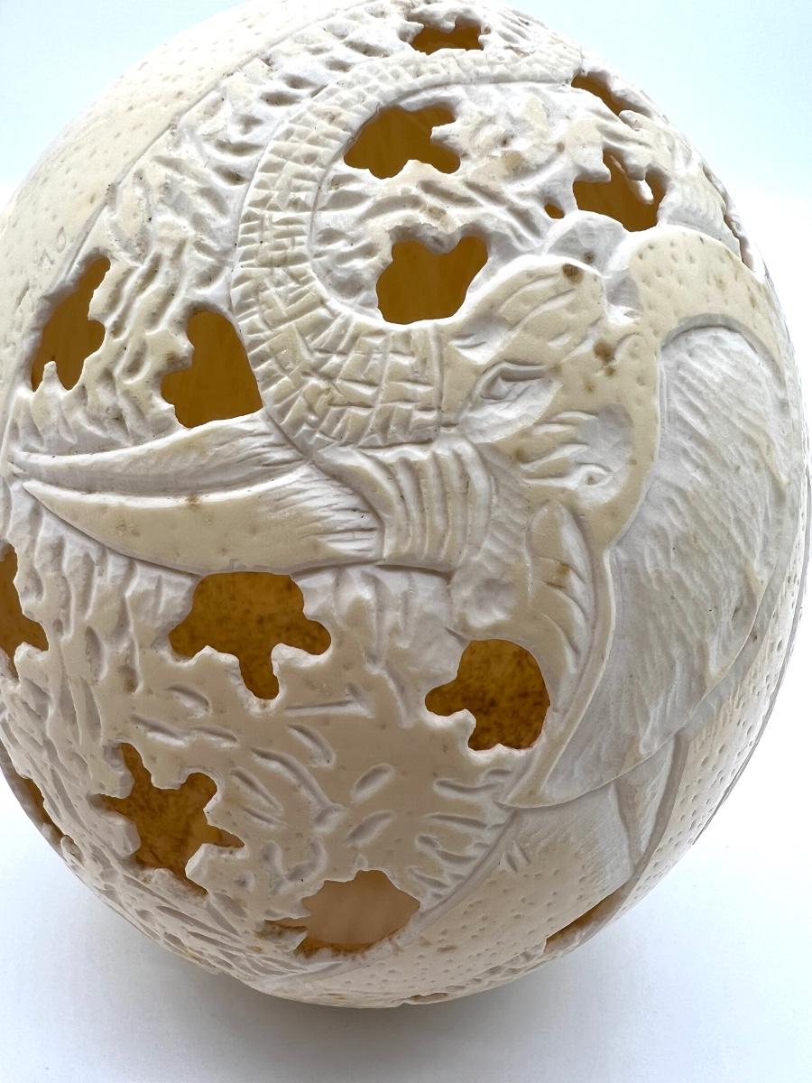 1987 Carved & Signed  Ostrich Eggs Elephants