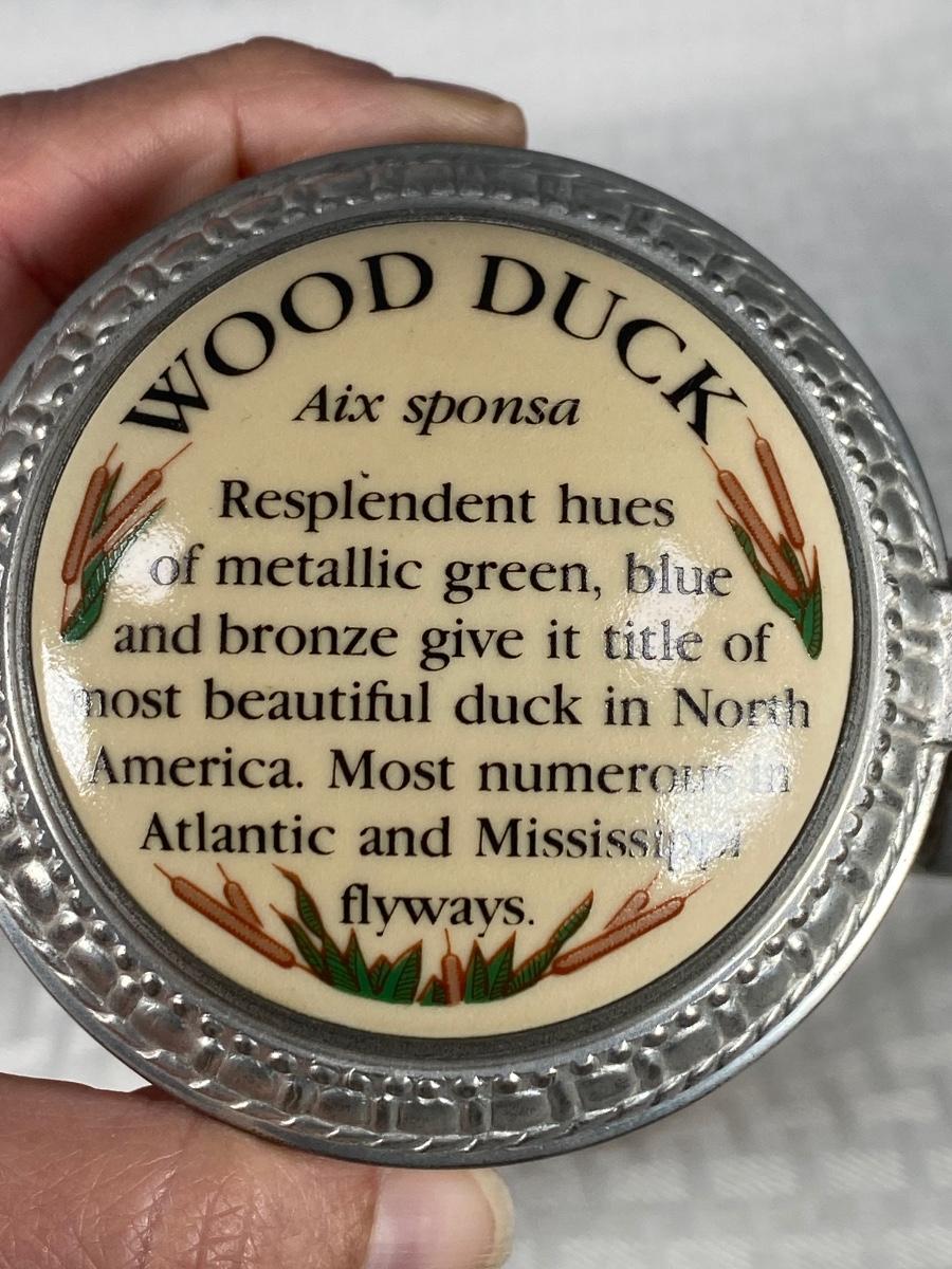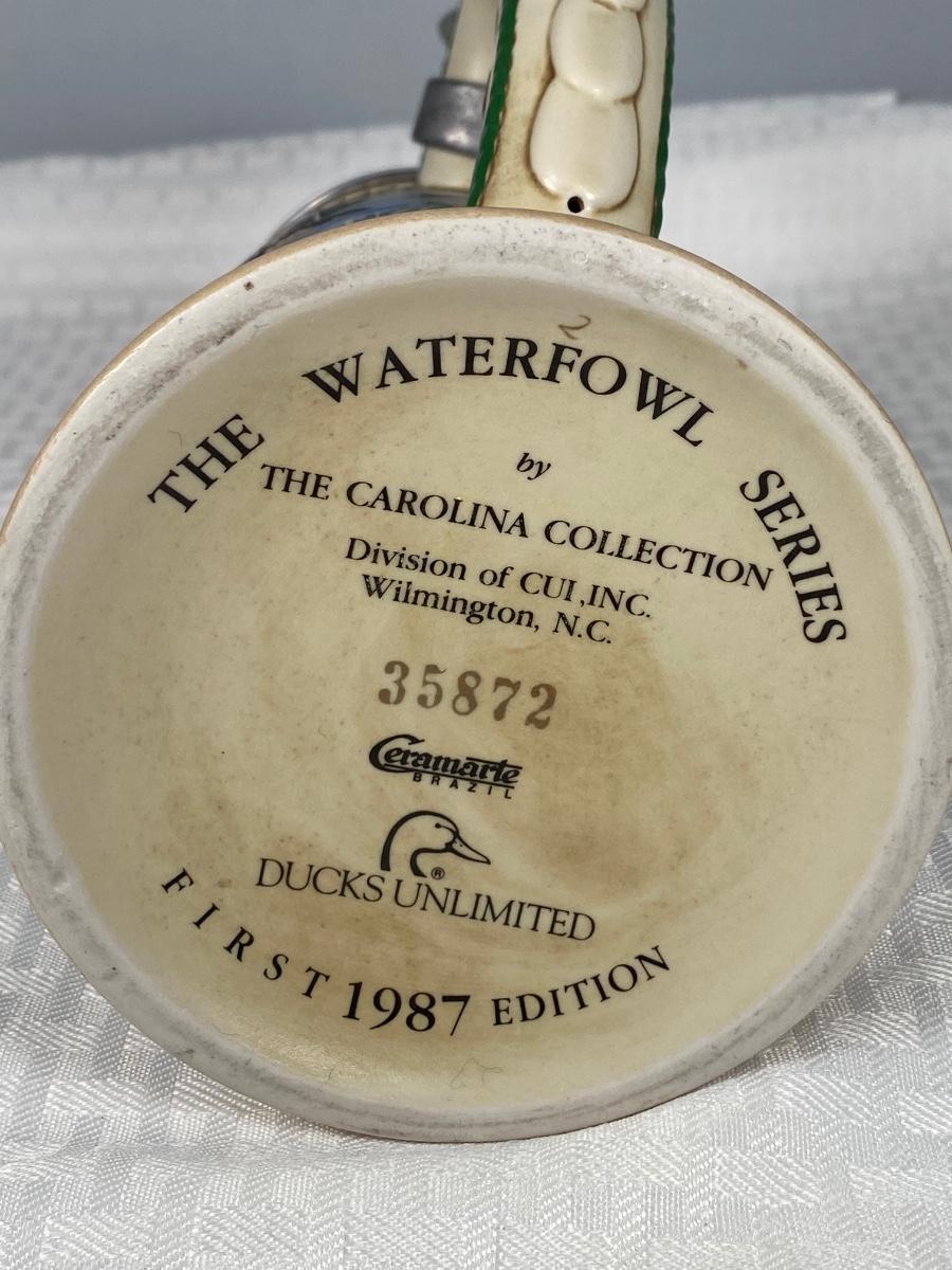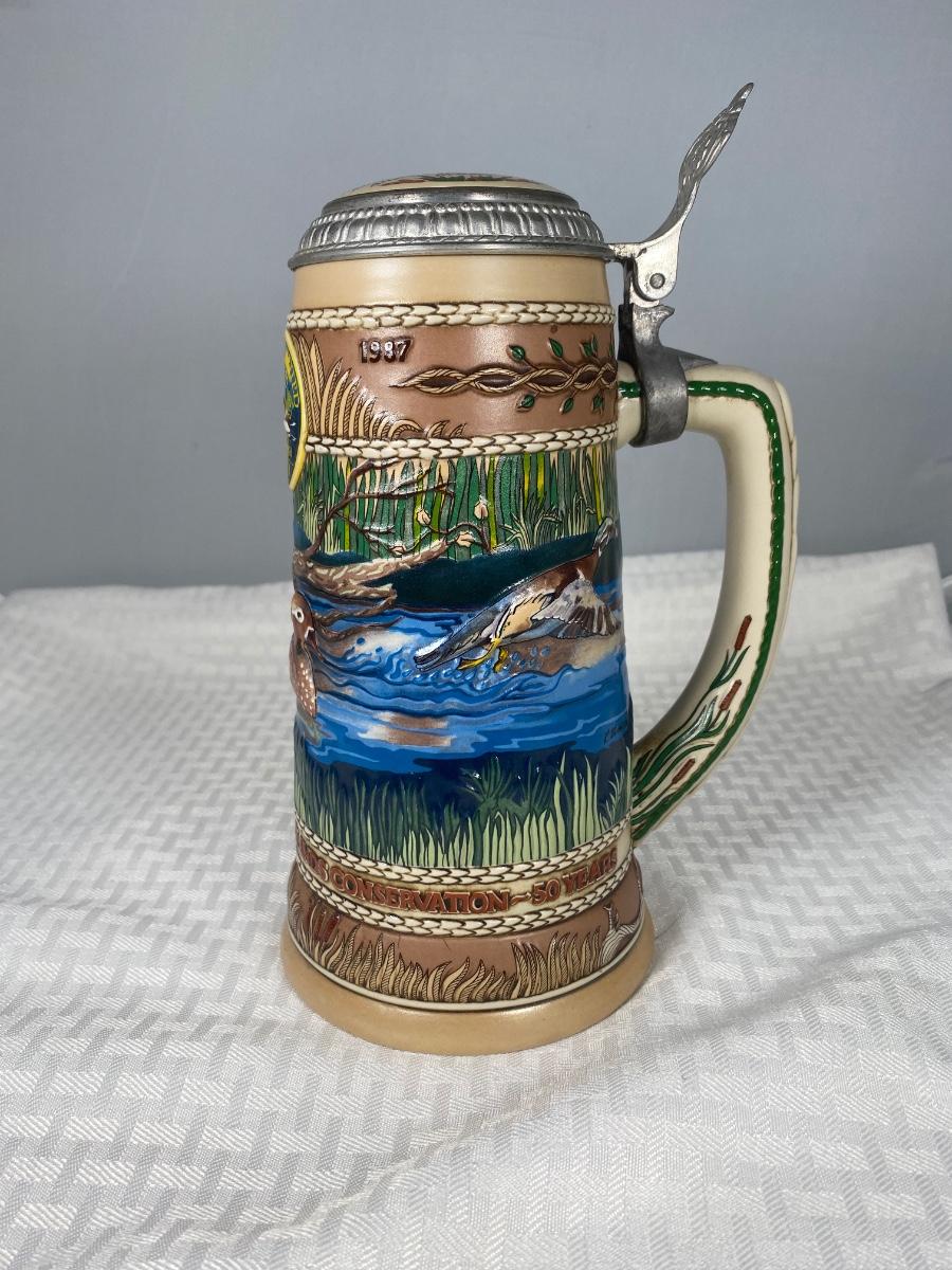 1987 First Edition Ducks Unlimited Waterfowl Series Wood Duck Lidded Stein. Good previously displayed condition.