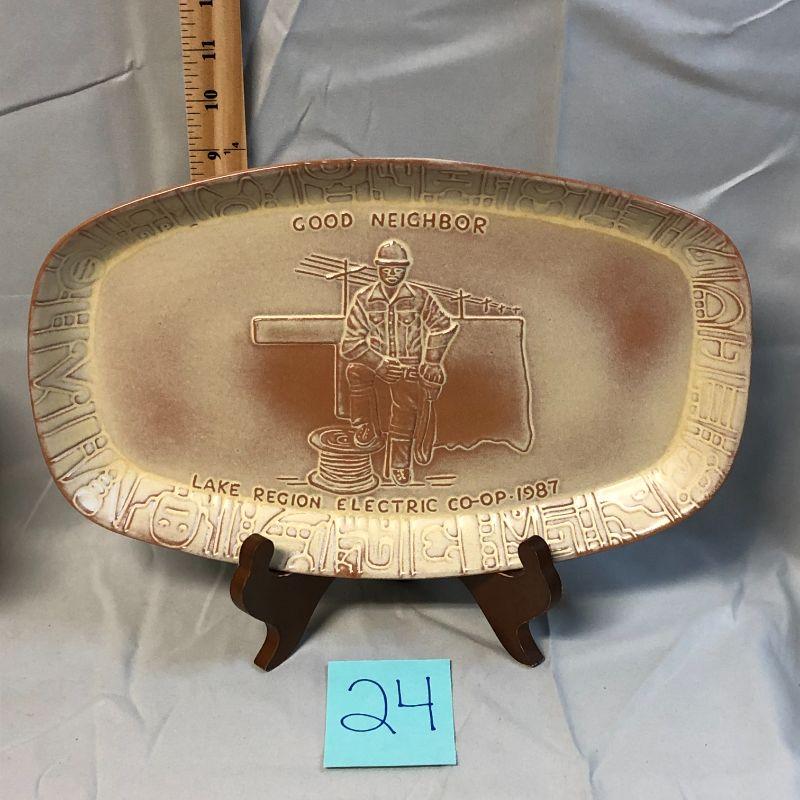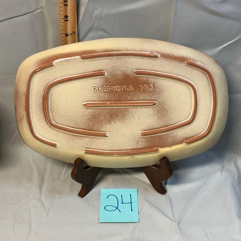 This tray is in the Desert Gold color and in excellent condition - no chips, cracks, or other signs of use or damage. It is about 14" x 8.5". Stand not included.