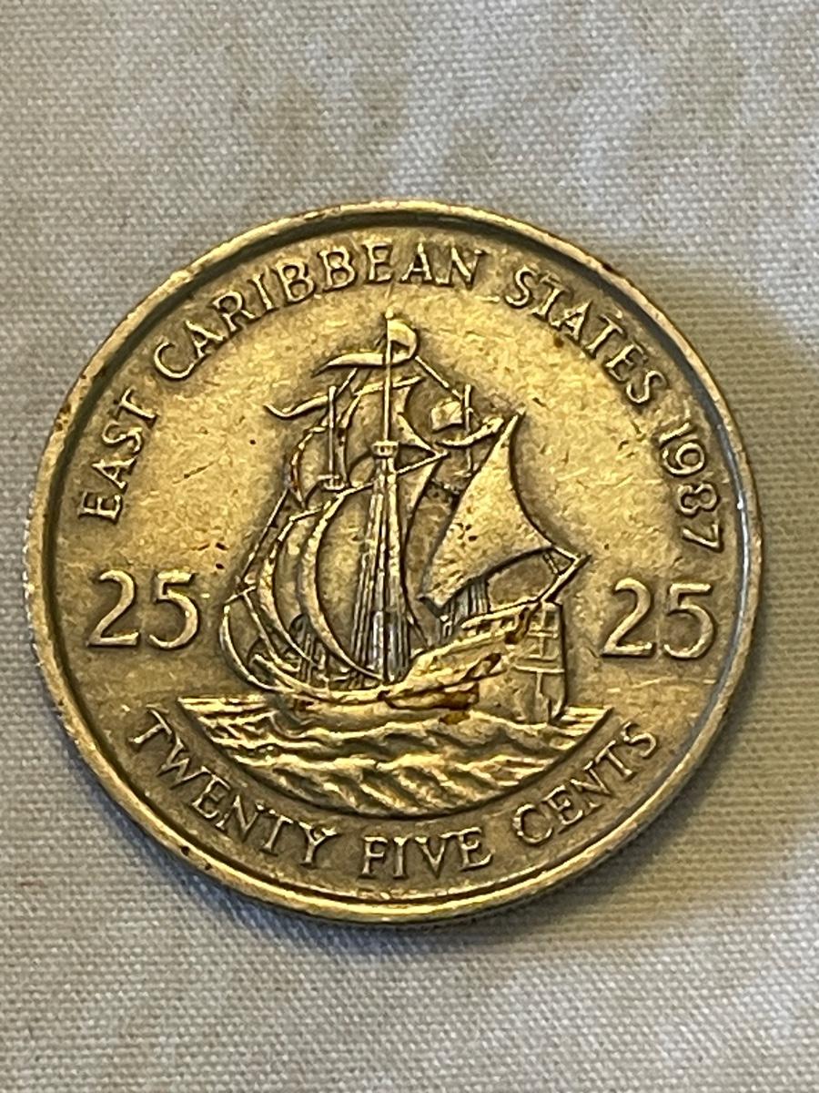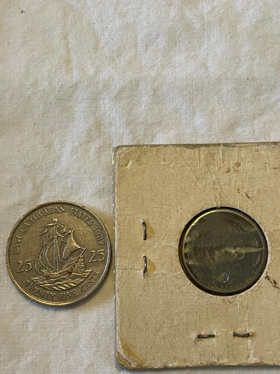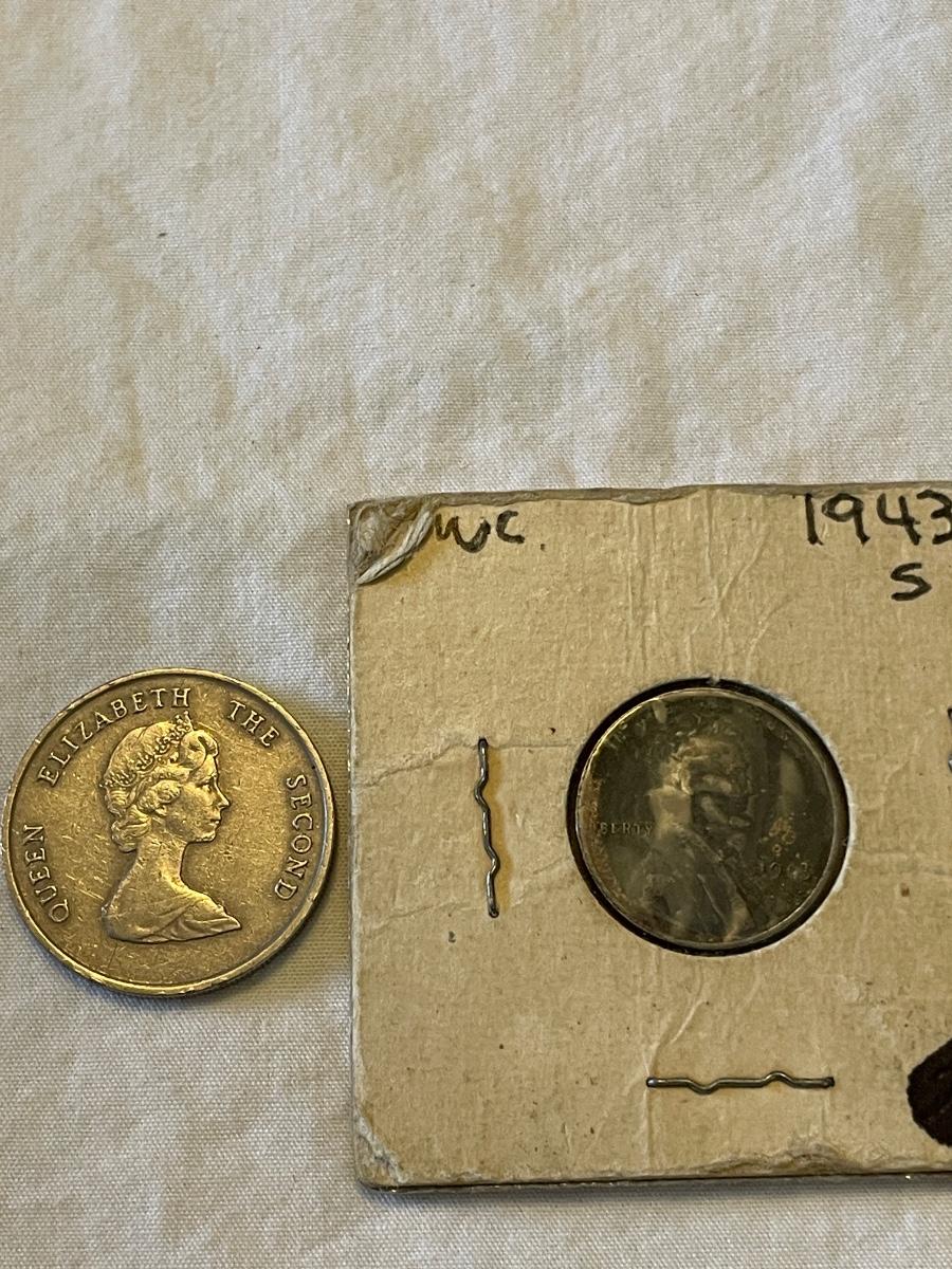 1987 QUEEN ELIZABETH THE SECOND STATE TWENTY FIVE CENT AND 1943-S WHEAT PENNY