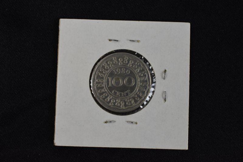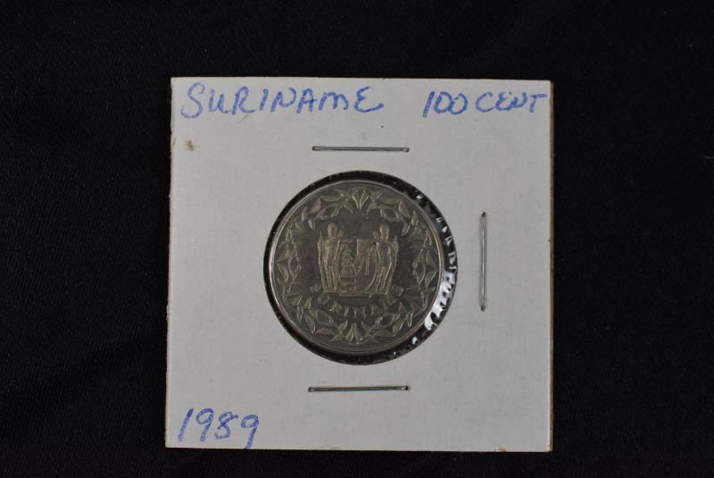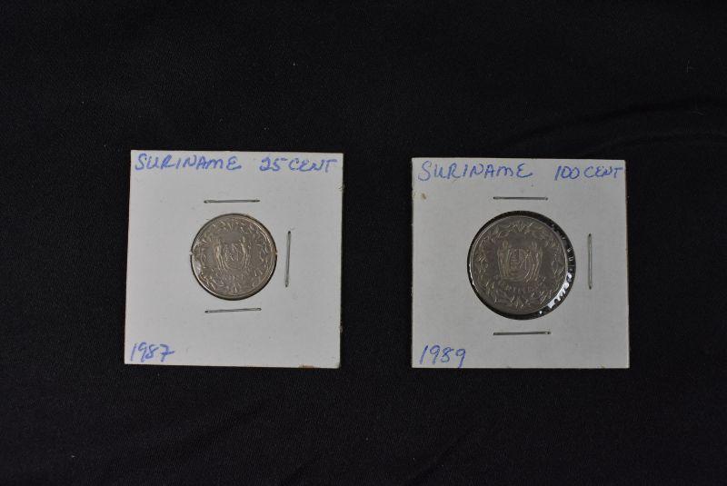 1987 Suriname 25 Cents and 1989 Suriname 100 Cents