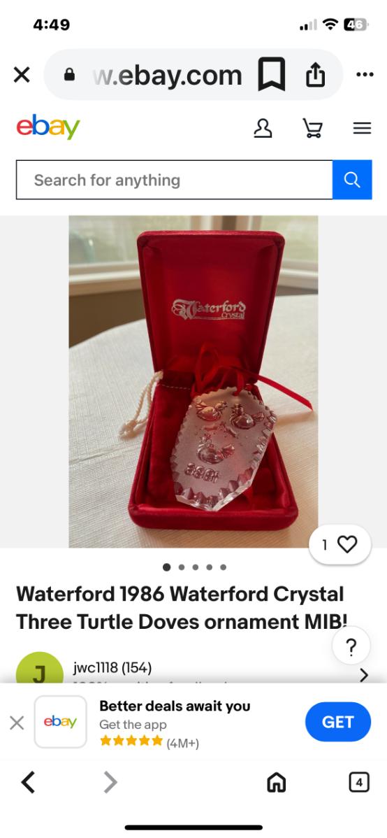 1986 WATERFORD CRYSTAL 12 DAYS OF CHRISTMAS COLLECTION