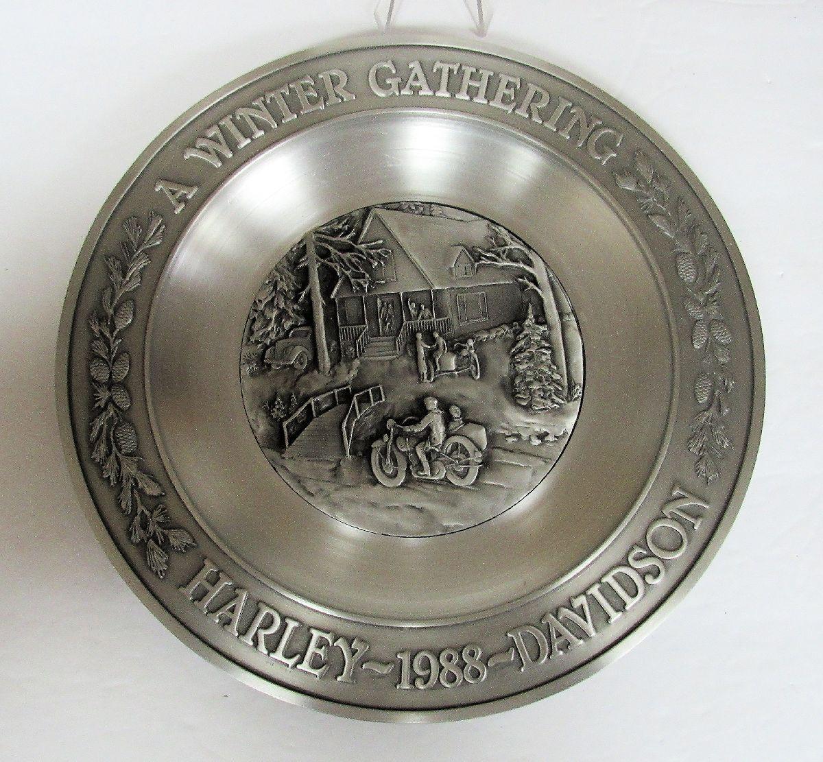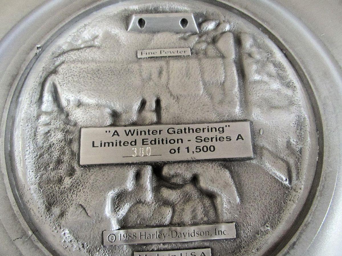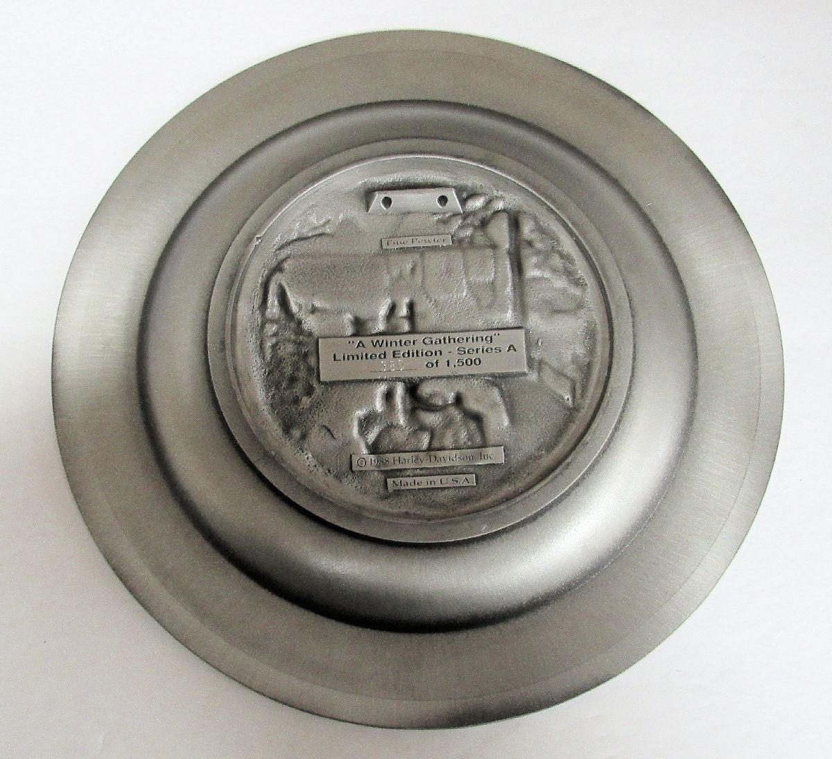 1988 Limited Edition 380/1500 Harley Davidson Pewter Plate, A Winter Gathering, Heavy Good Quality, Made in USA