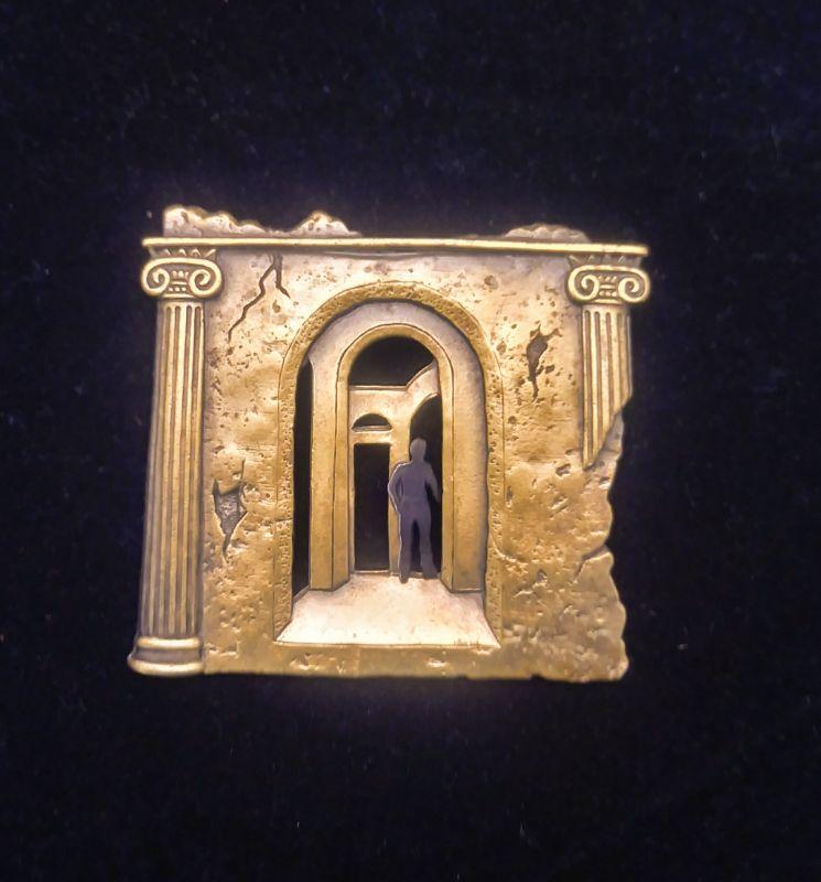 1988 Jonette Jewelry Ancient Roman Ruins Brooch 2"x 2"