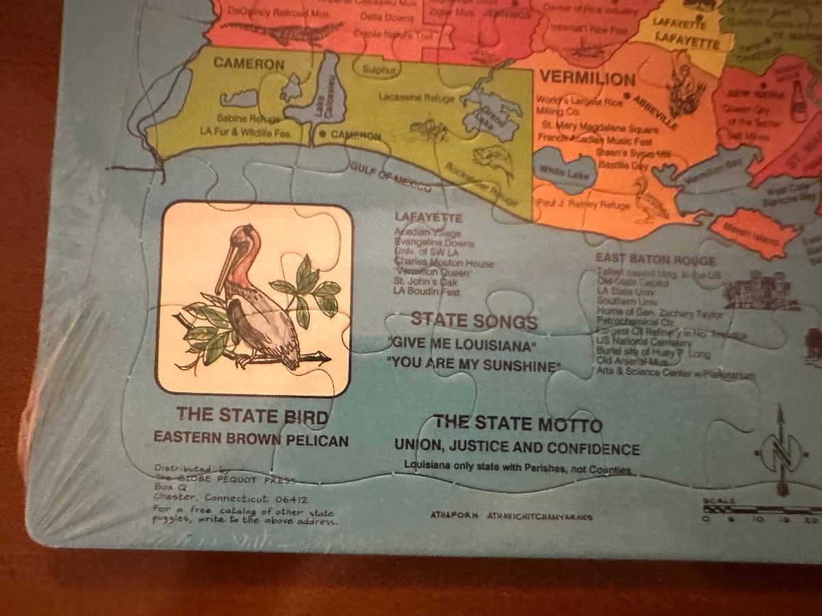 Sealed, unopened 1988 Louisiana Map Puzzle.