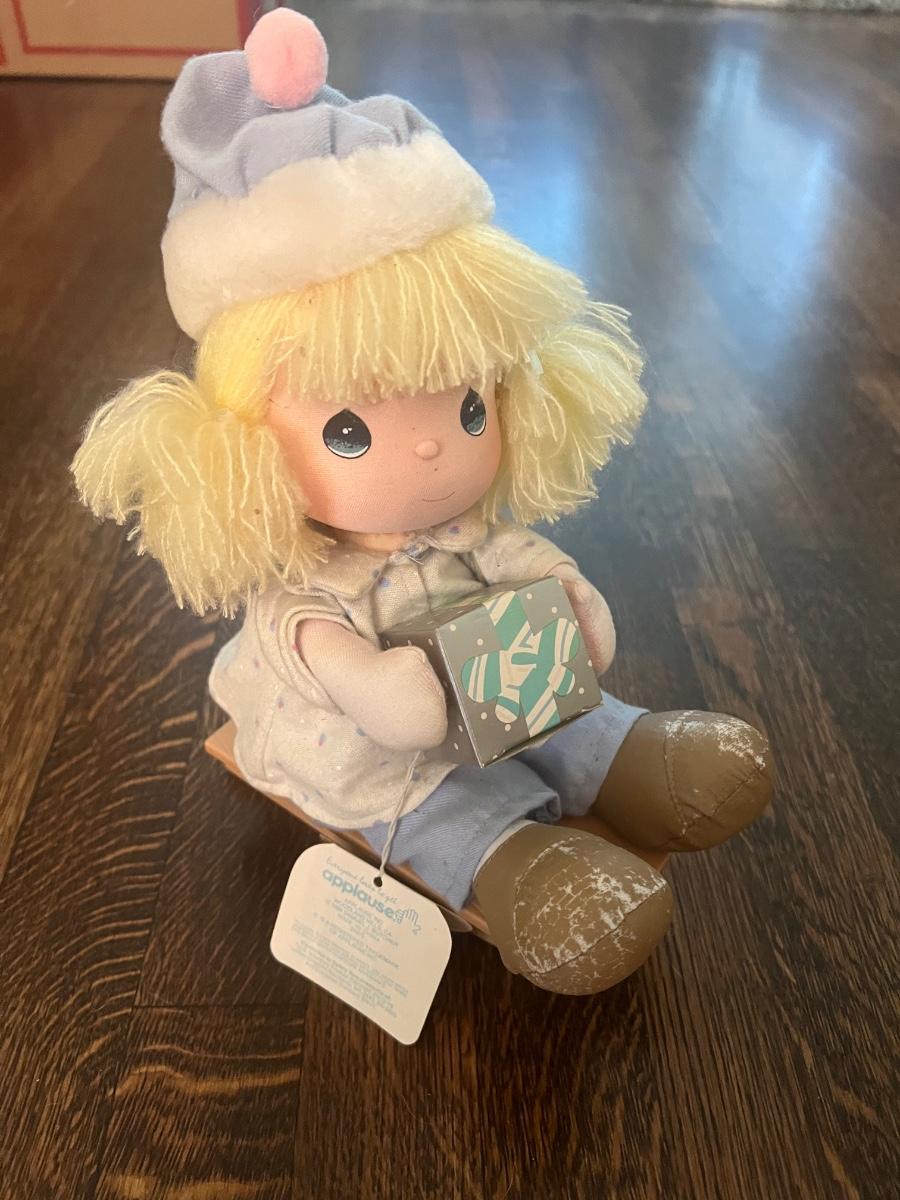 The precious moments doll winds up and plays “Walking in a Winter Wonderland” as it nods along
