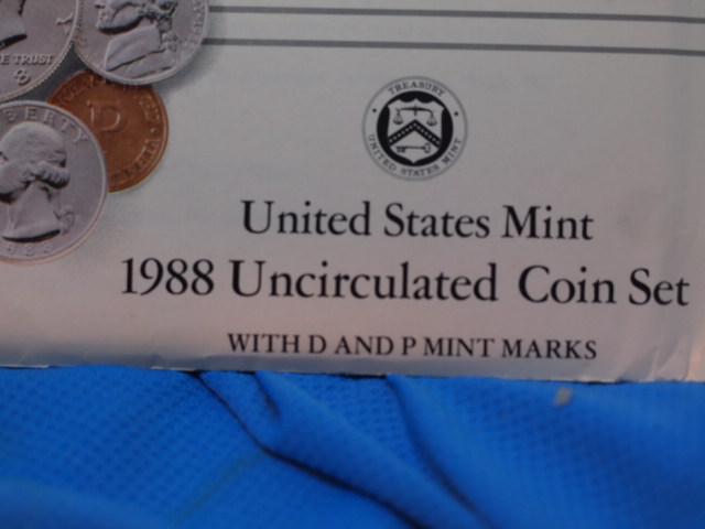 two 1988 Uncirculated coin sets. These sets are one each from the Denver Mint and the Philadelphia mints