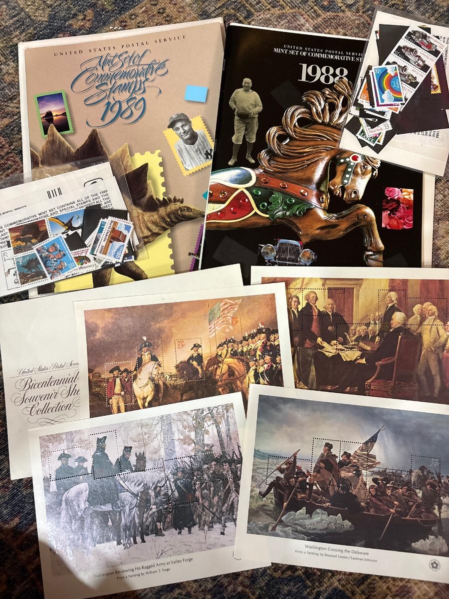 1988 and 89 commemorative stamp booklet with stamps. And bicentennial souvenir sheet collection.