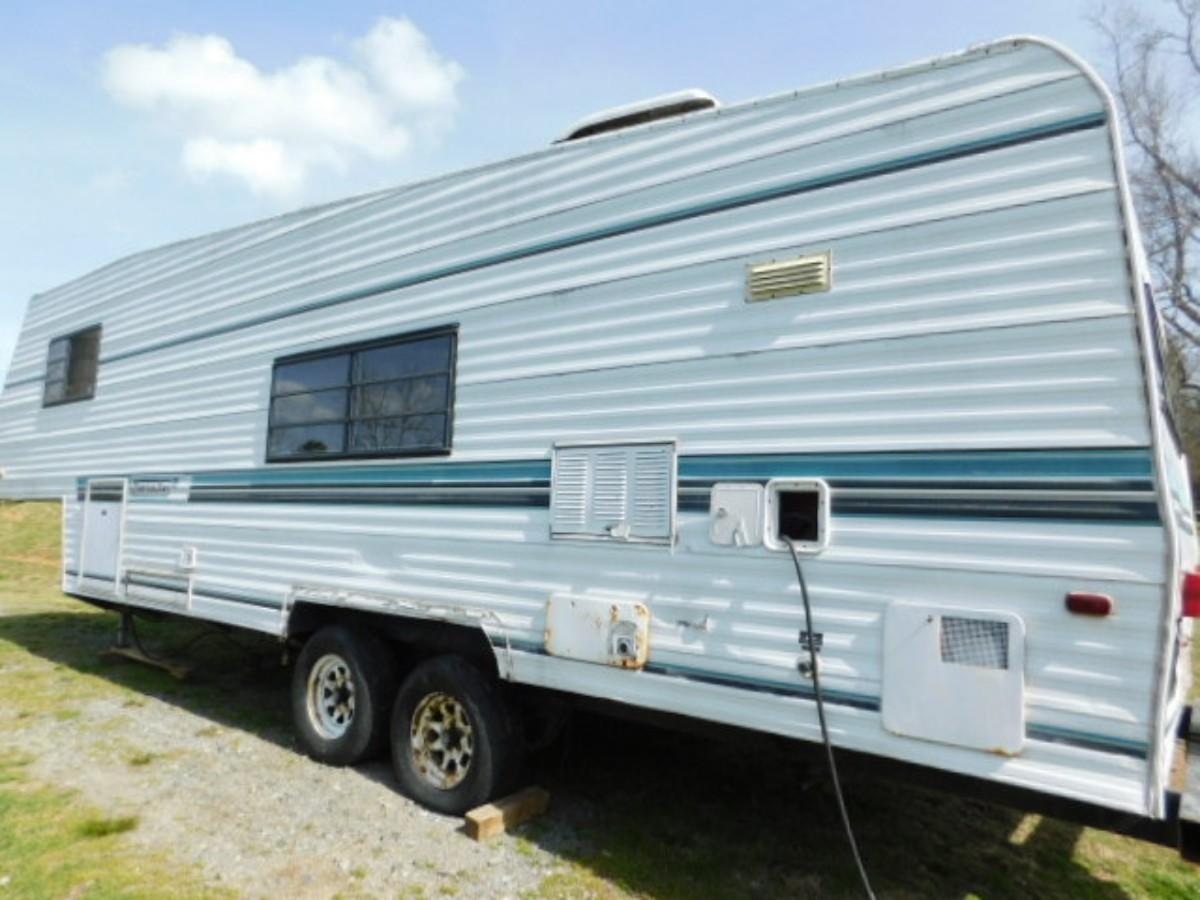 1989 American Star 28' Pull Behind Travel Camper please see all pictures for features or issues. Had a water leak at kitchen but repaired. Newer refrigerator. Has power levelers. Clean title. No open title transfers.