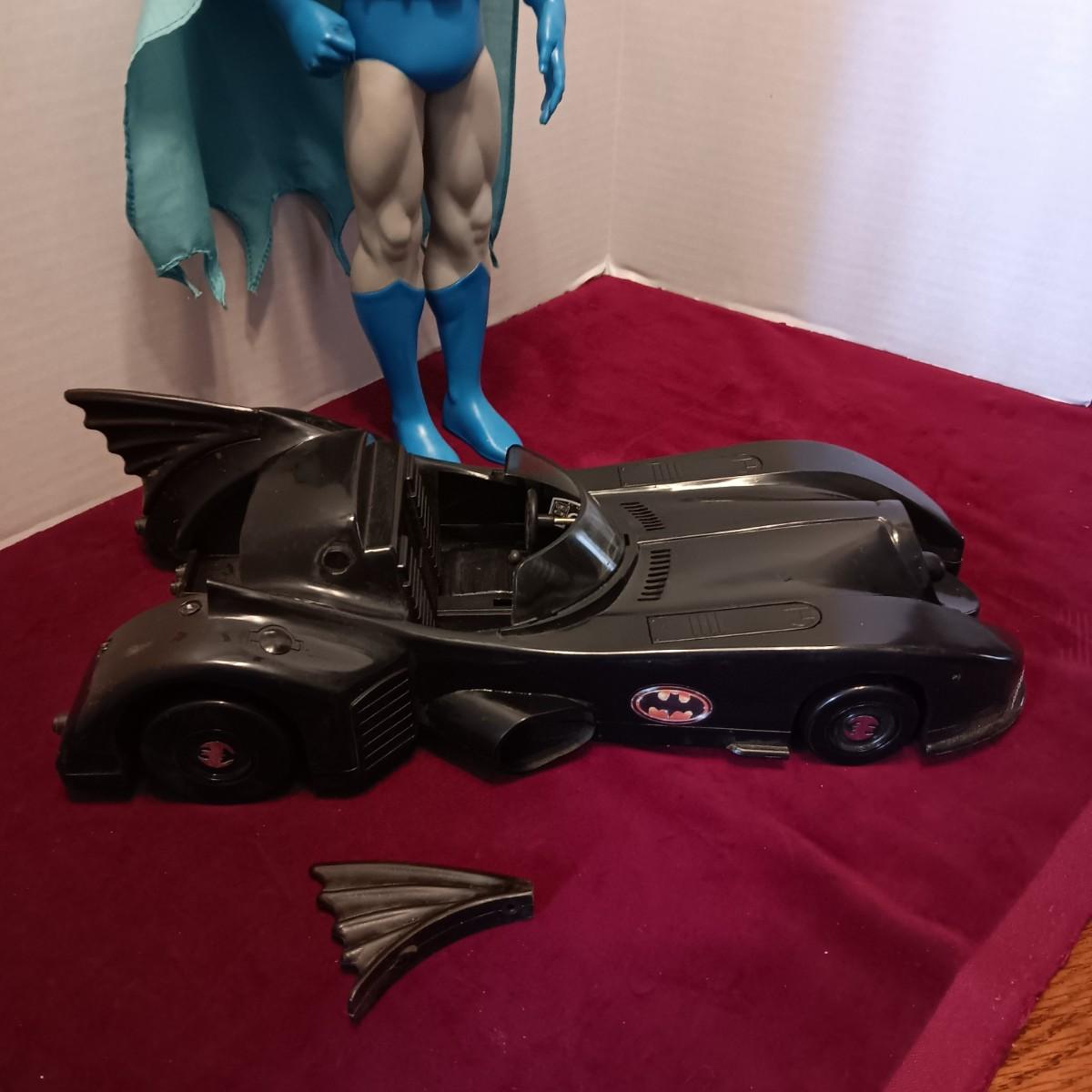 THE BACK FIN ON THE BATMOBILE IS INCLUDED AND NEEDS TO BE REGLUED. IT IS ALSO MISSING THE TRUNK COVER