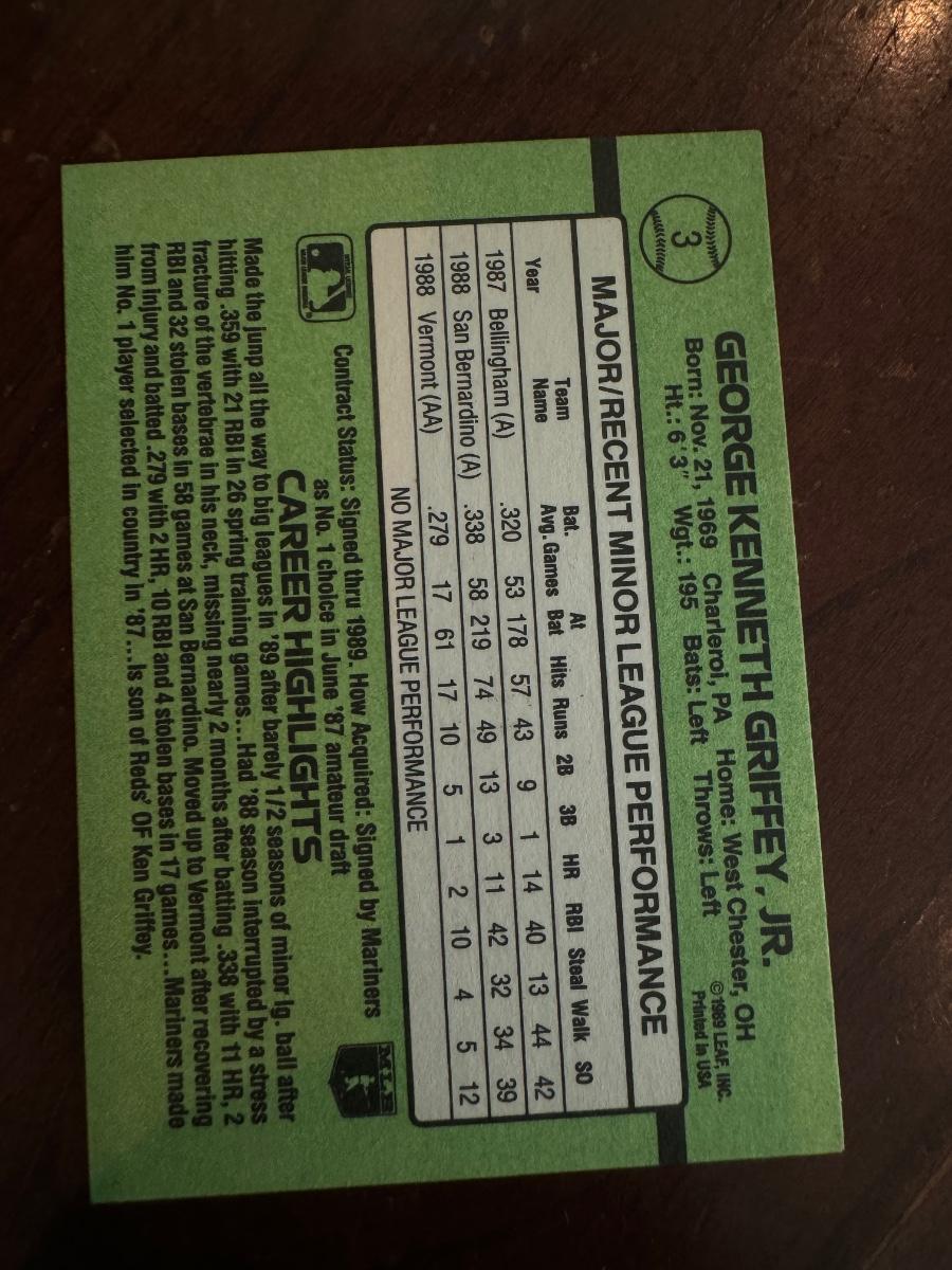 1989 DONRUSS THE ROOKIES KEN GRIFFEY JR