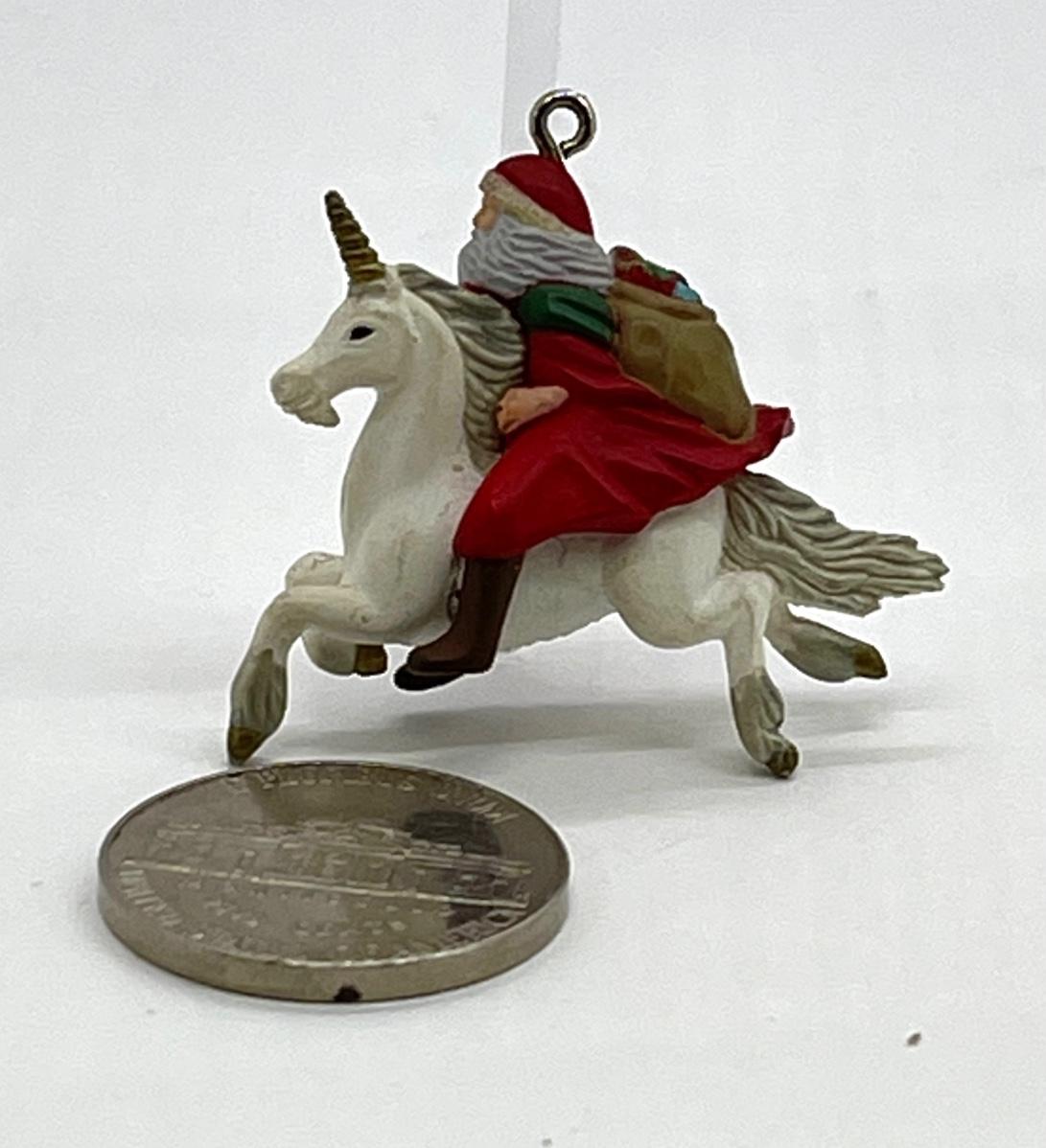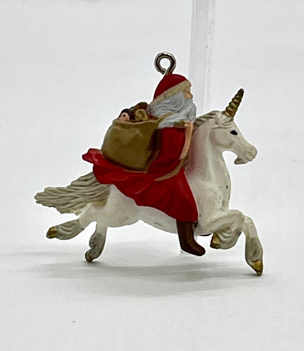 1989 Hallmark Keepsake Miniature Santa’s Magic Ride on Unicorn Mini Ornament