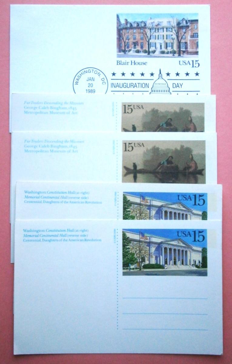 1989 INAUGURATION DAY Postal Cover together with (4) 15 Cent Unused Postal Cards