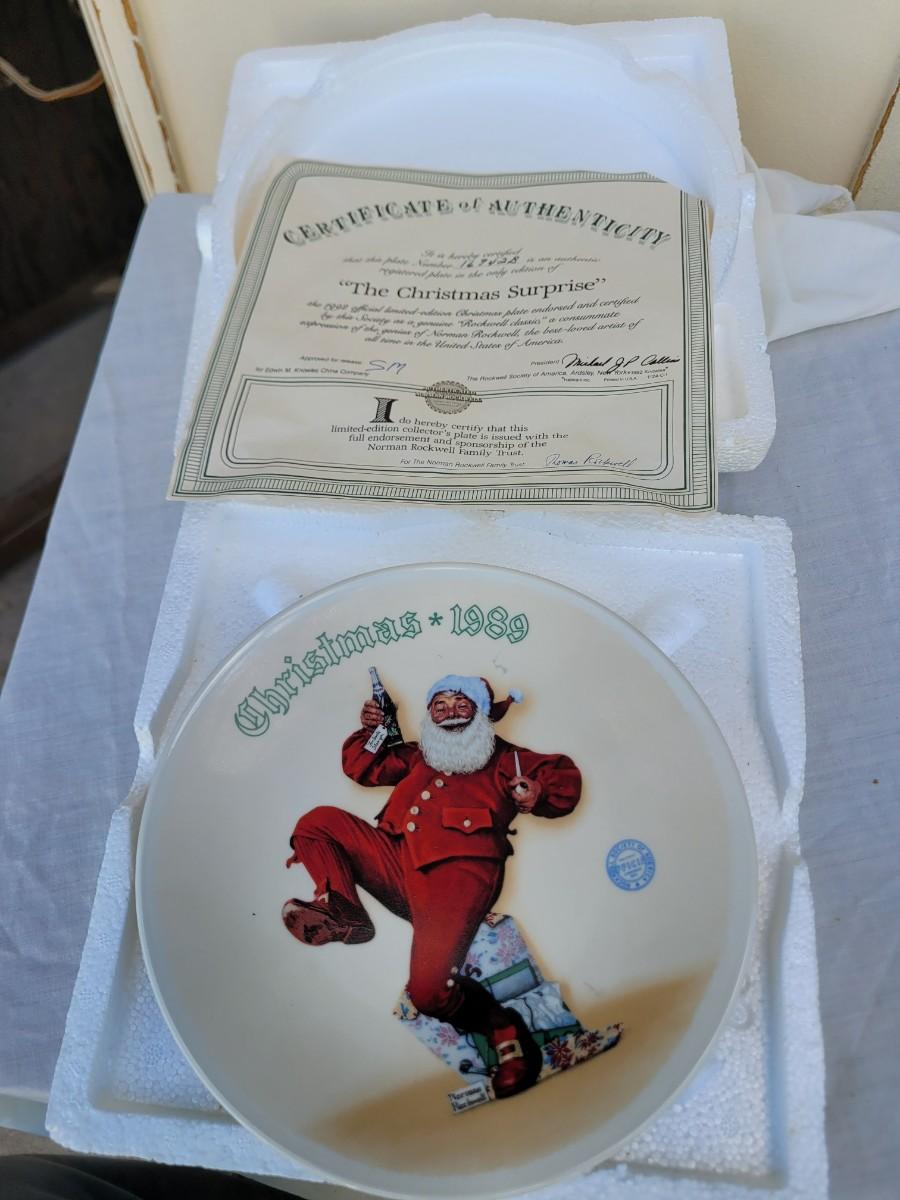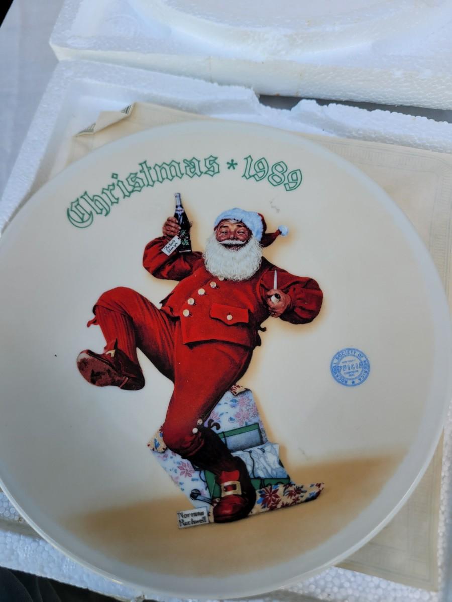 vintage Norman Rockwell Christmas collector's plate from 1989, specifically featuring a depiction of Santa Claus, likely part of a series like "Jolly Old St. Nick" or a similar Christmas theme.