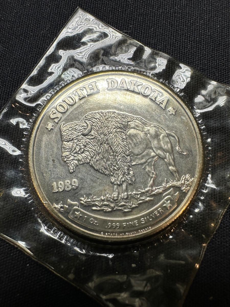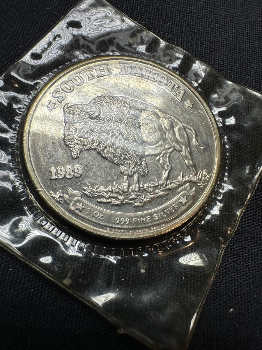 1989 SOUTH DAKOTA 1 OUNCE .999 FINE SILVER ROUND