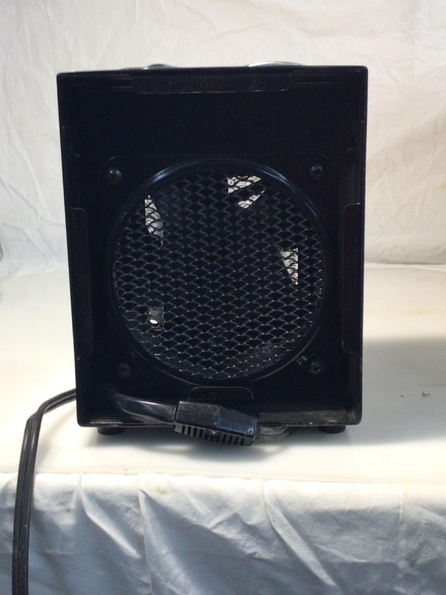 Measurements are 7 3/4 Inches in height by, 5.5 inches in width by, 5 inches in depth. Is in Excellent working condition, heats up instantly, with strong fan speed.