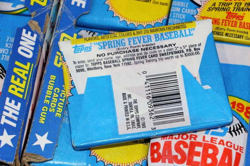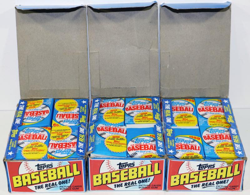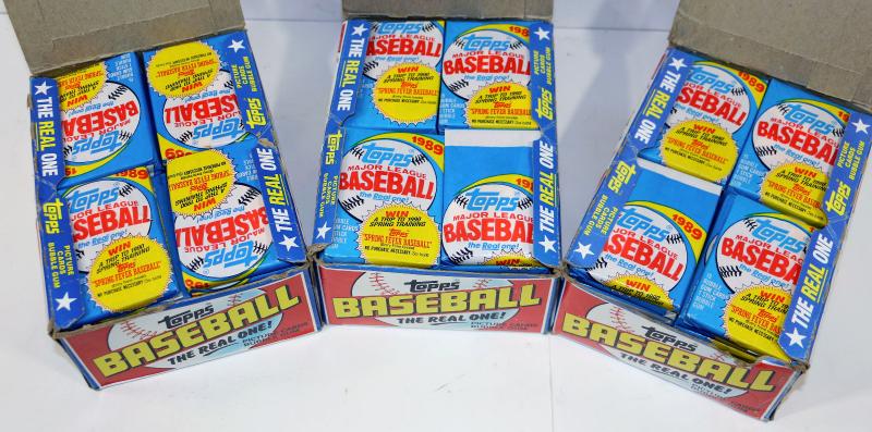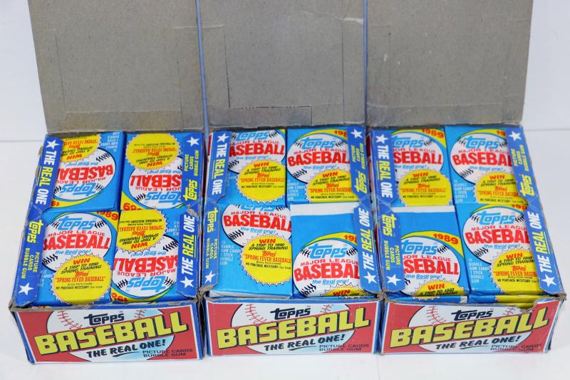 These are factory sealed 1989 Topps Bubble Gum Card Packs, 100-120 in total, the boxes however are not matching the cards - as seen on pictures.