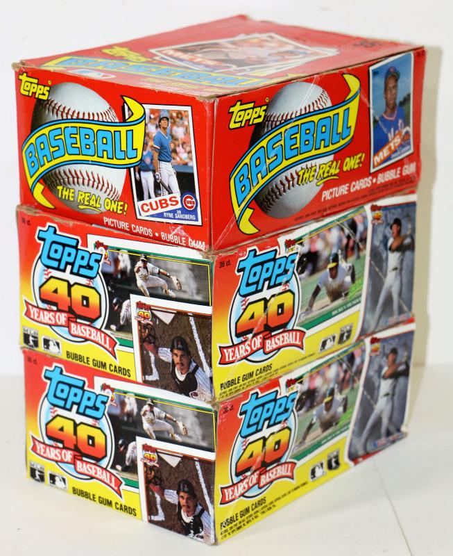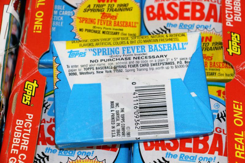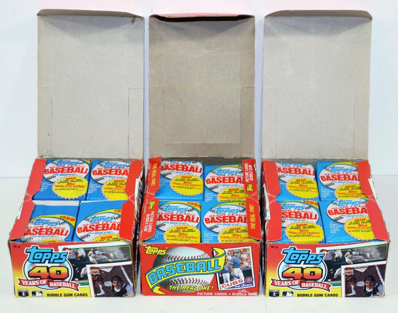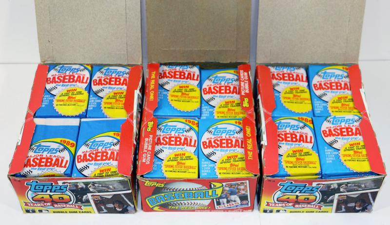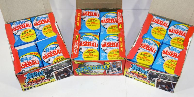 These are factory sealed 1989 Topps Bubble Gum Card Packs, 100-120 in total, the boxes however are not matching the cards - as seen on pictures.