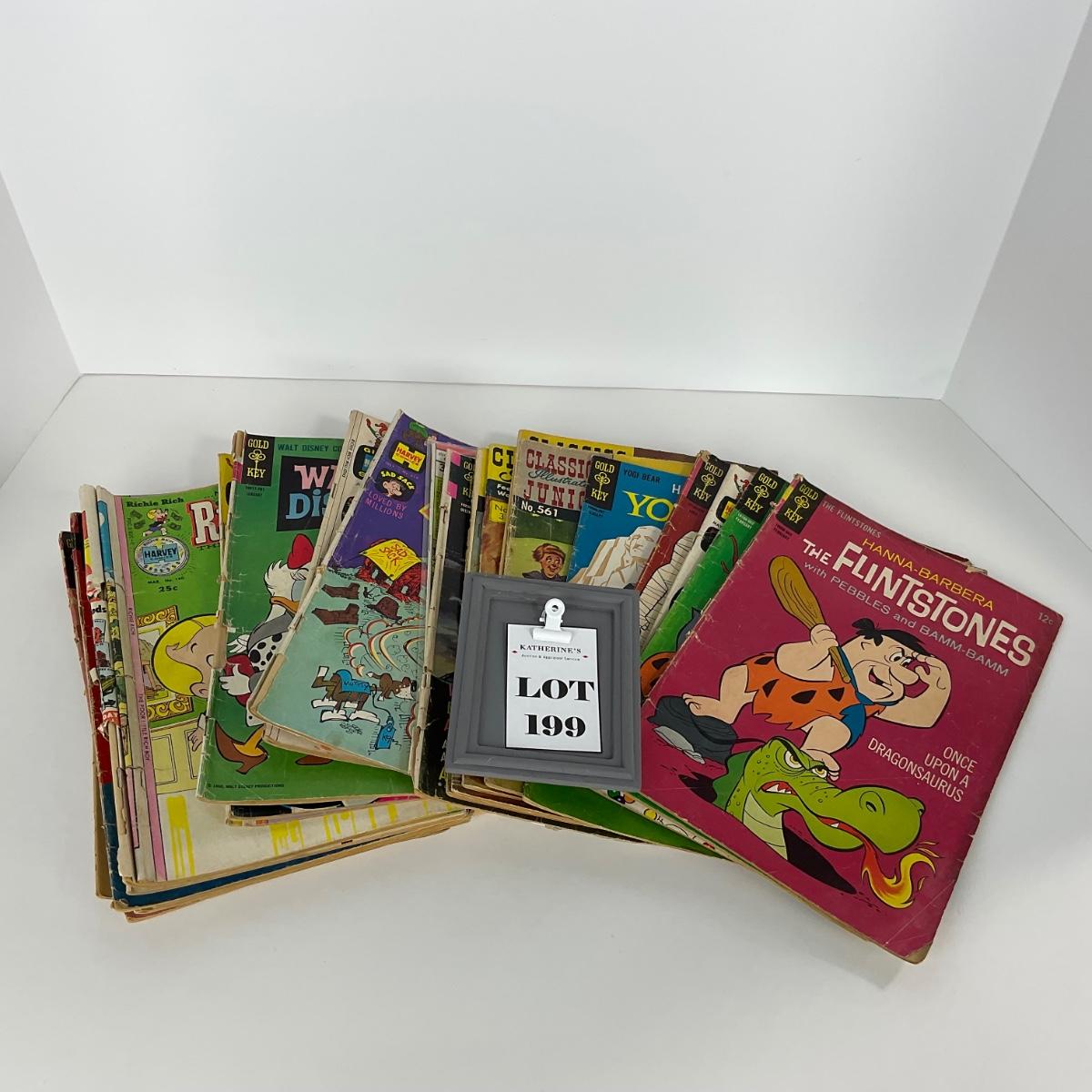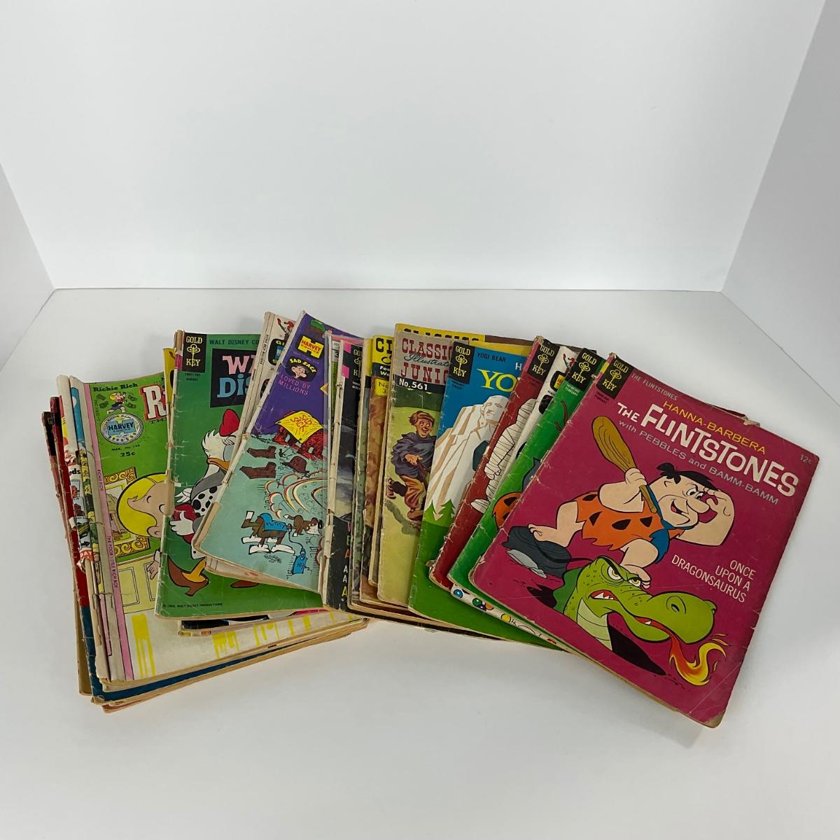 Vintage stack of miscellaneous comics. These comics are worn and have some damage. Please see photos for details and condition. ::: Shipping is available on this lot. If you require shipping you must let us know at the close of the auction. We will coordinate with you after the item has been won. Shipping fees will include insurance up to or exceeding the value of all items being mailed. If you have any questions regarding this lot please contact the auctioneer either via this website, by direct email or by phone. PICK UP TIMES and other important information can be found in the TERMS and DESCRIPTION of the auction. Please take a look for pertinent information. Thanks!