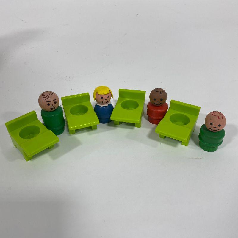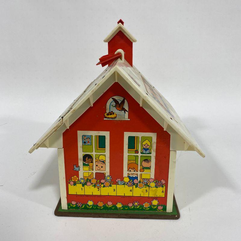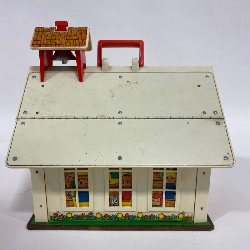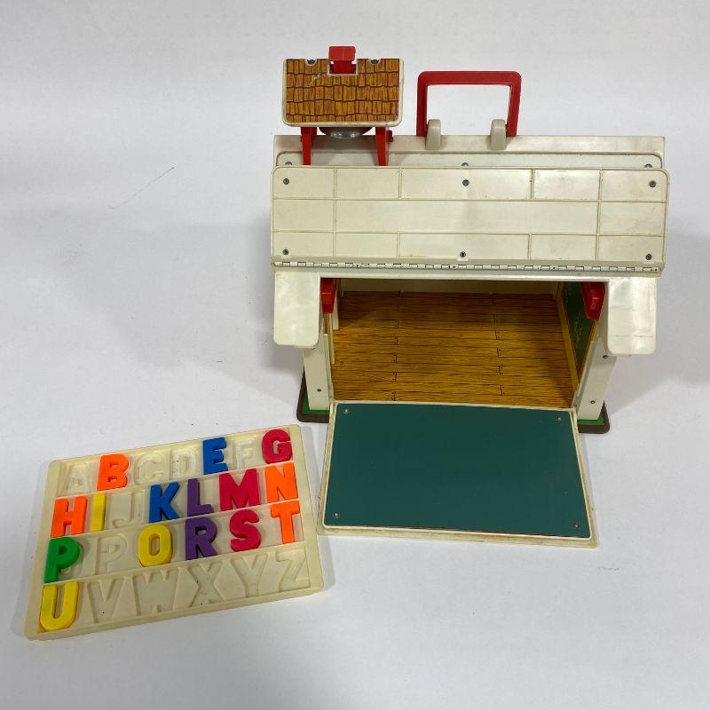 Now that school has come home again it's time to add some old/new toys! Set includes Four Desks, Four Children, Teacher, Teacher's Desk, Swing Set, Merry-Go-Round and original chalk-board eraser. Some (okay, a lot) of magnetic letters missing from set. Bell works great! ding ding!