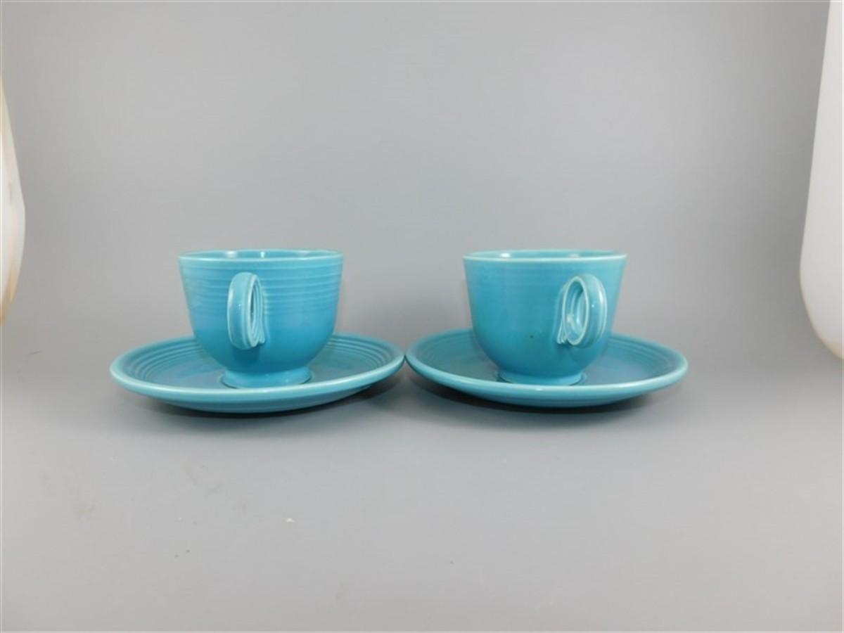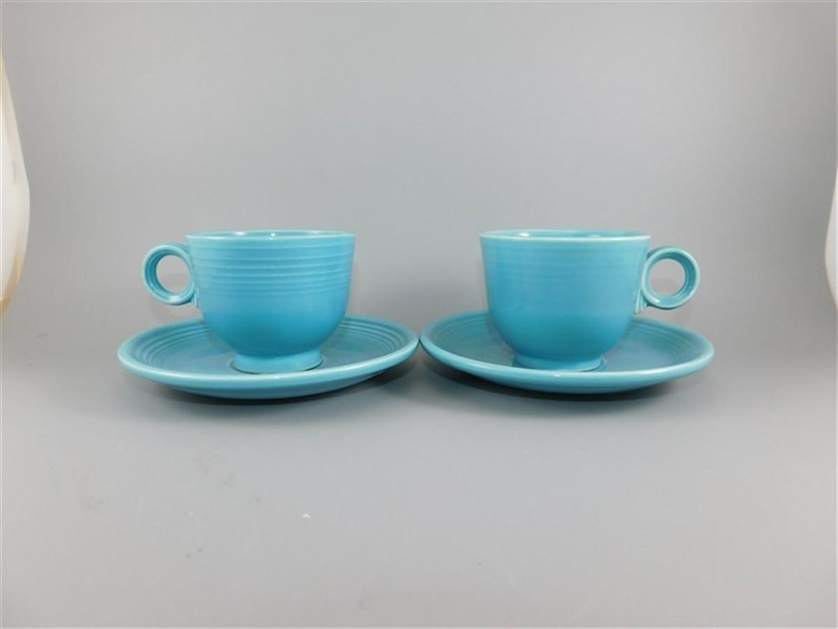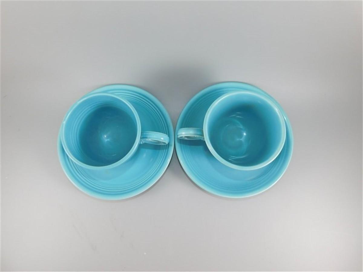 199 Lot of 4 pcs Fiesta Style Cups and Saucers Blue ( one cups has small chip)