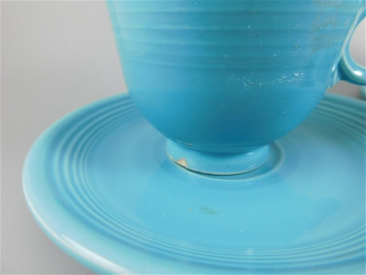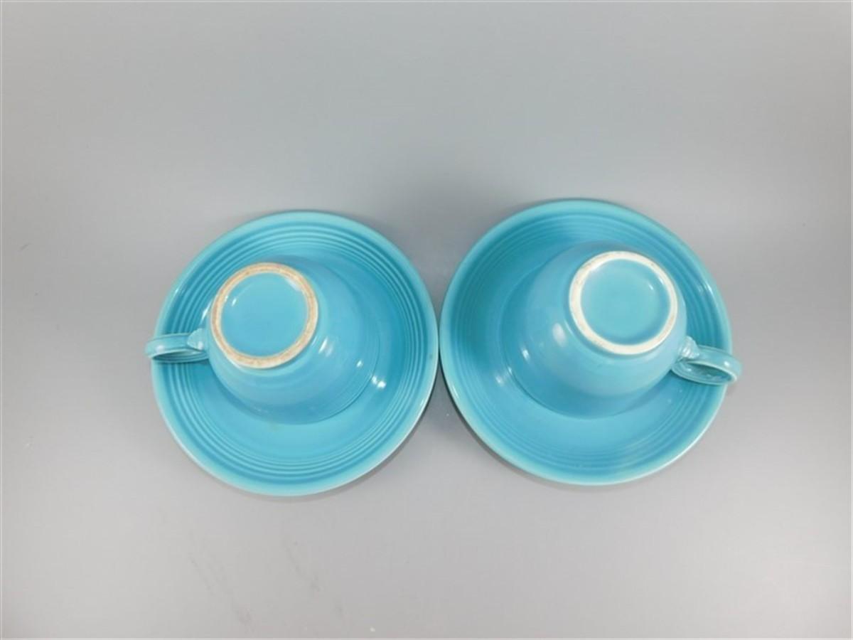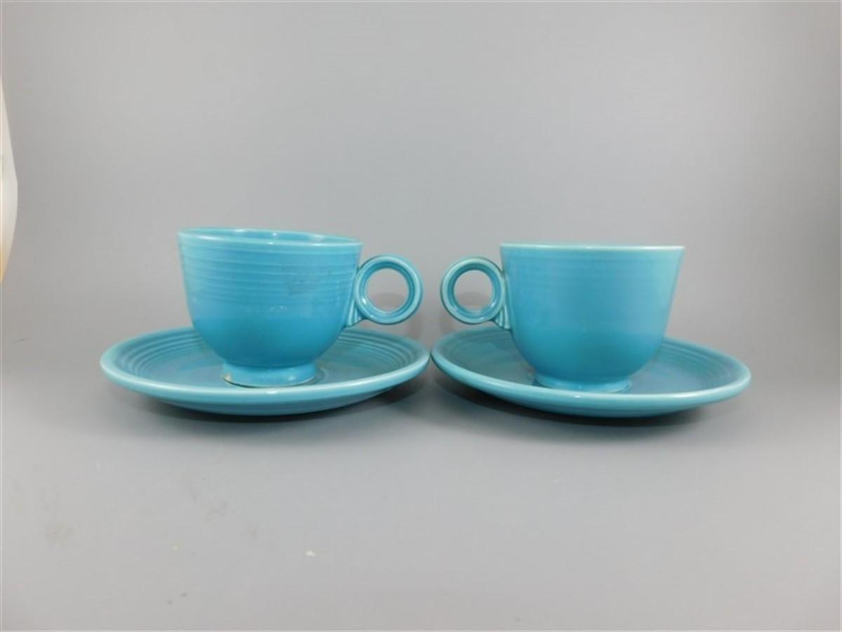 199 Lot of 4 pcs Fiesta Style Cups and Saucers Blue ( one cups has small chip)