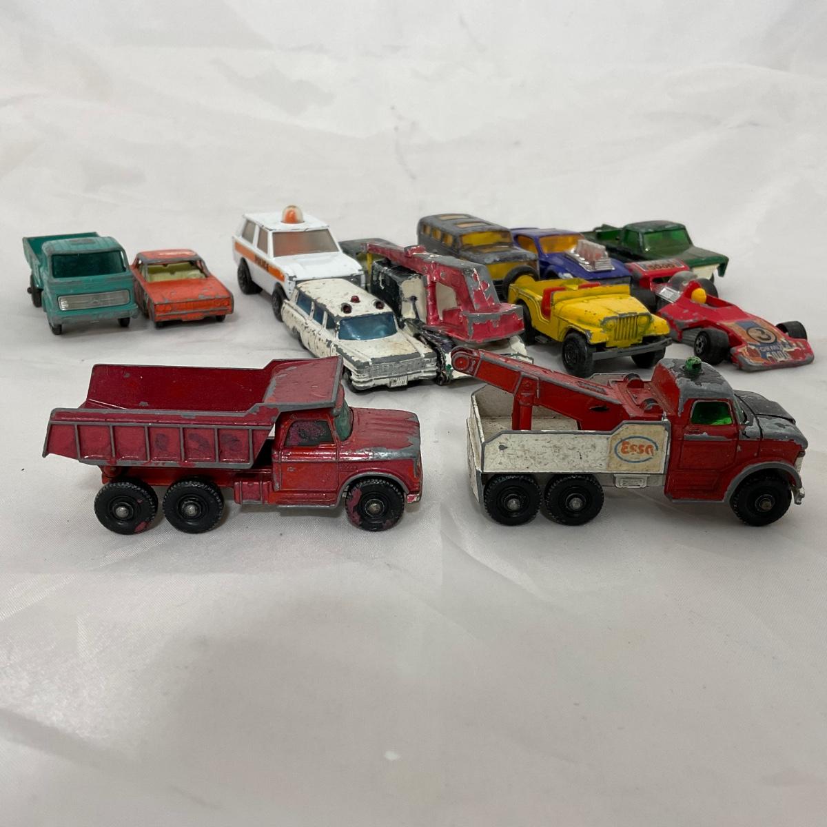 Lot of vintage 1960’s / 1970’s Matchbox cars in rough well loved conditon. Please see photos for details and condition. ::: Shipping is available on this lot. If you require shipping you must let us know at the close of the auction. We will coordinate with you after the item has been won. Shipping fees will include insurance up to or exceeding the value of all items being mailed. If you have any questions regarding this lot please contact the auctioneer either via this website, by direct email or by phone. PICK UP TIMES and other important information can be found in the TERMS and DESCRIPTION of the auction. Please take a look for pertinent information. Thanks!