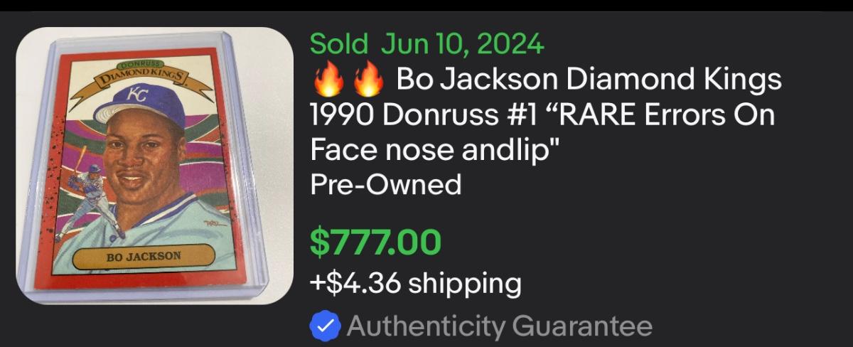 1990 DONRUSS BO JACKSON KC ROYALS MULTIPLE ERRORS WHITE DOT LIP AND NECK RECENT SALES 777