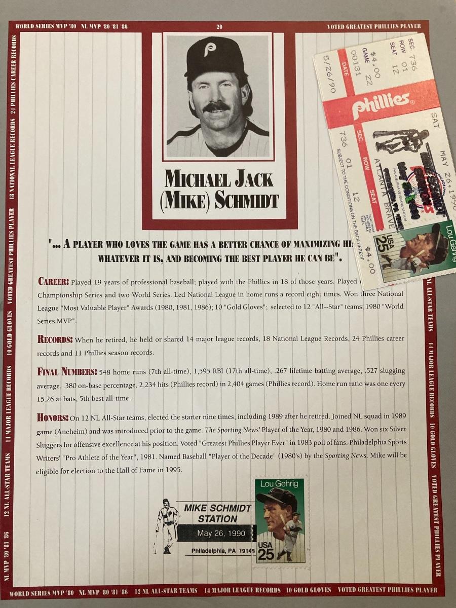 1990 Mike Schmidt Station Autographed Card and Ticket RARE!