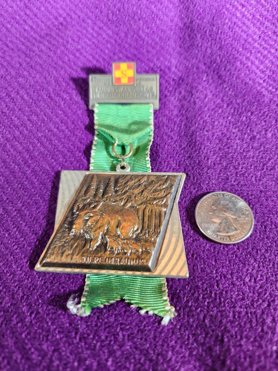 Volksmarching (from German "Volksmarsch", people's march) is a form of non-competitive fitness walking that developed in Europe in the mid-late 1960s. By 1968, the International Federation of Popular Sports (better known as the "IVV") was formed by Germany, Austria, Liechtenstein and Switzerland. A volksmarch is essentially a more formalized version of a hike, in which participants check in at the start and proceed along a prescribed route“”usually ten kilometers, or 6.2 miles. This medal is from the estate of a life-long military family who were stationed for many years in German. See photos for size and details.