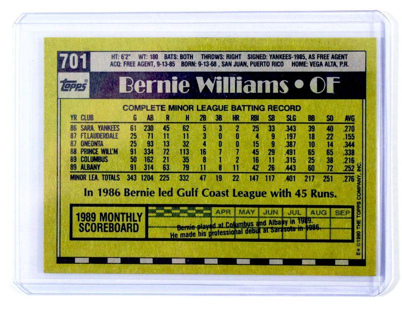 1990 TOPPS #701 BERNIE WILLIAMS ROOKIE CARD - NM / MINT