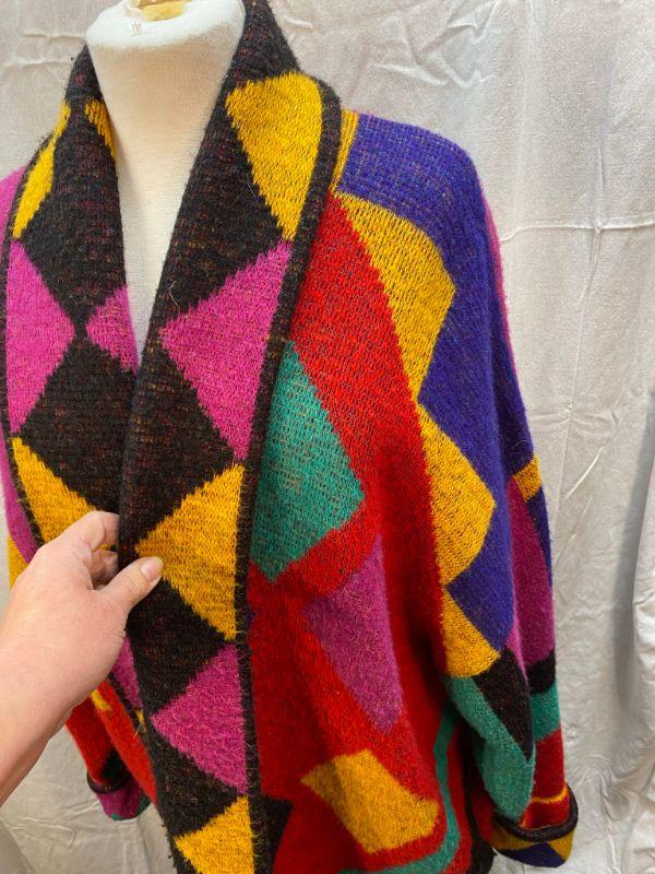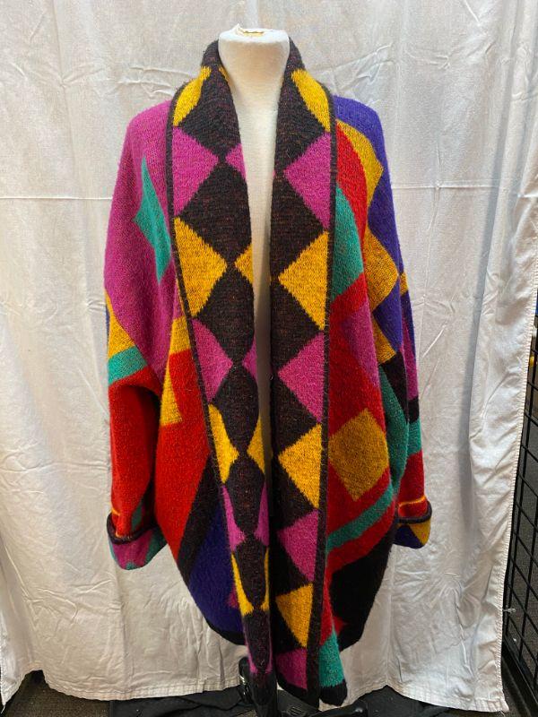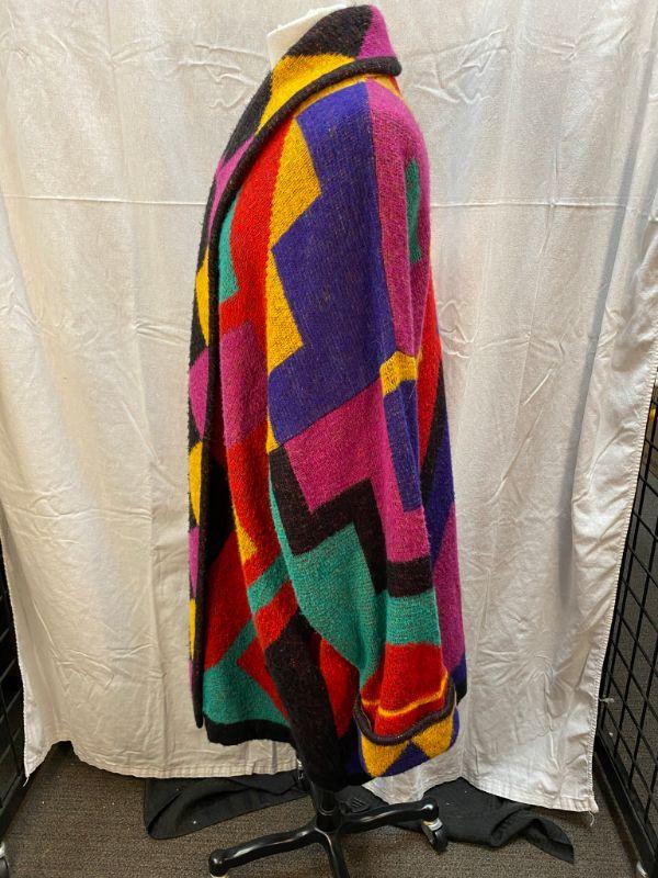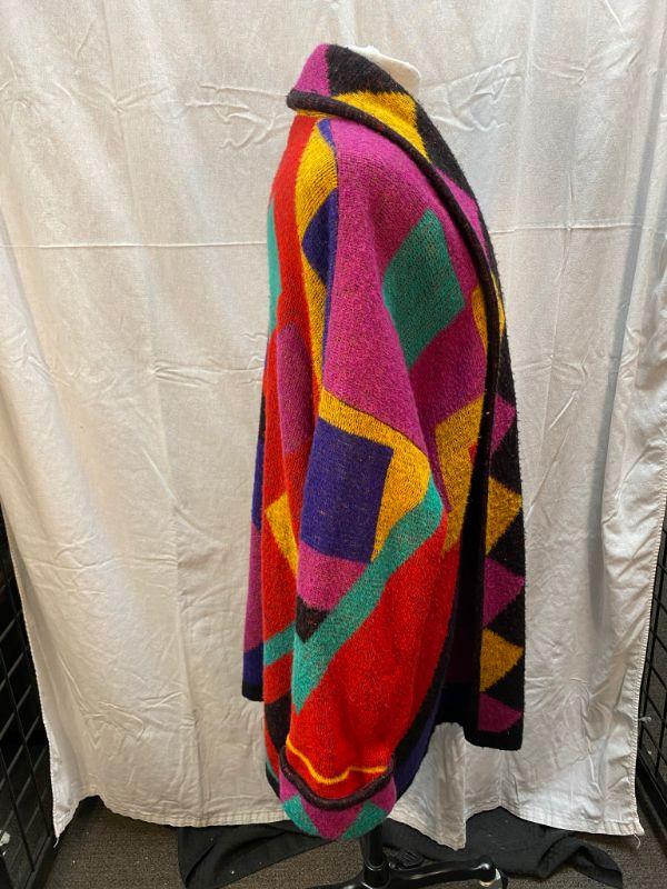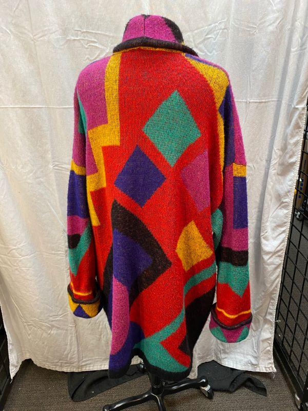 Retro 1990's color block cardigan by I.B. Diffusion. Long, knee length. Size 1X. Good condition.