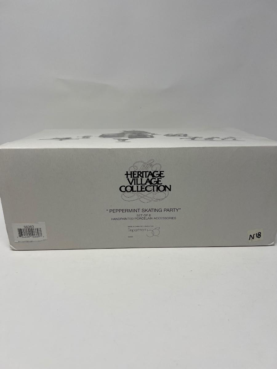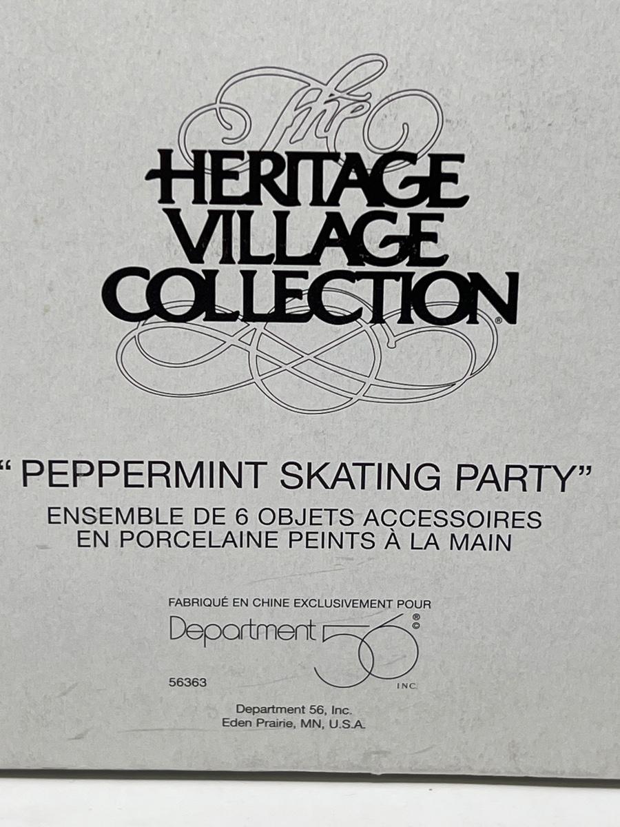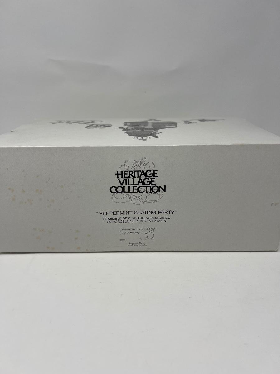 Heritage Vilkage Collection, Peppermint Skating Party, Department 56, set of 6 handpainted porcelain figures. #56363. Discontinued. Like new in original box (shelf wear and some spots on top of box).