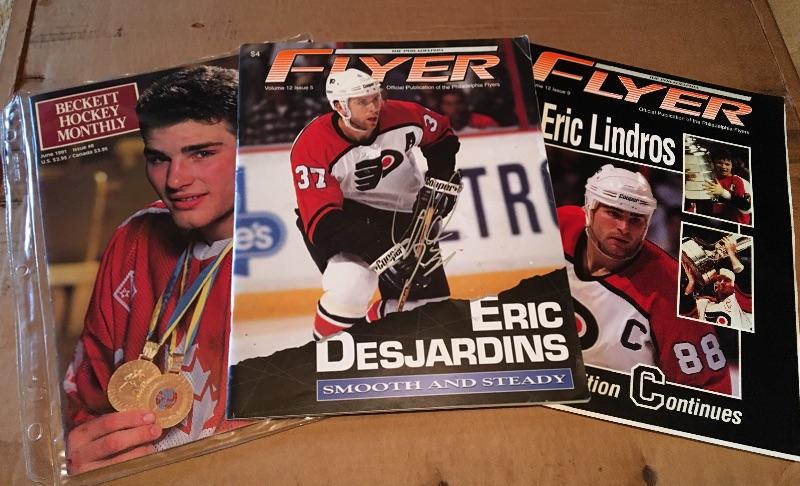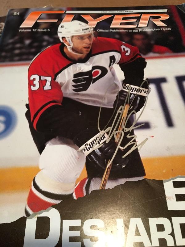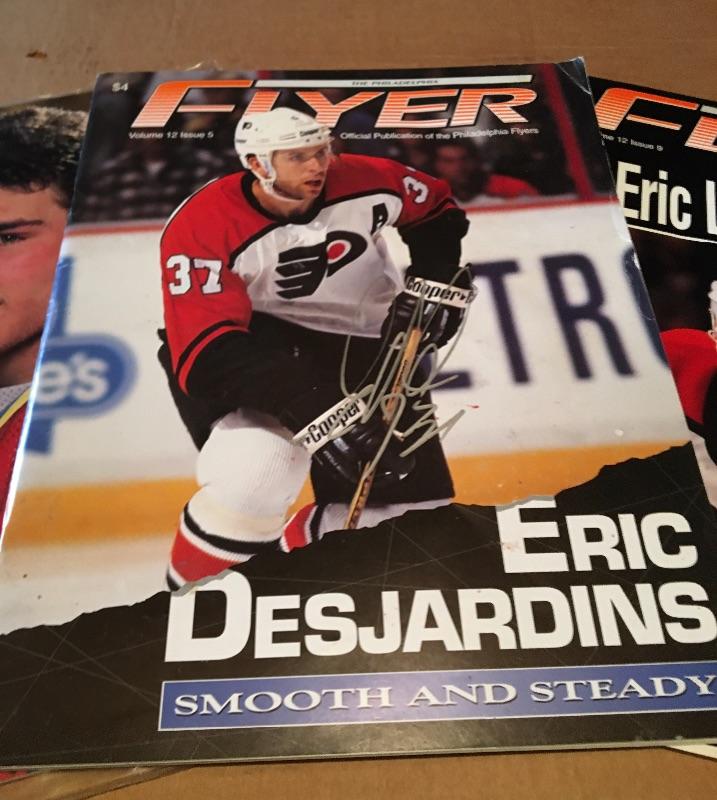1990s ERIC DEJARDINS Autograph Philadelphia Flyers with Magazine Lot.