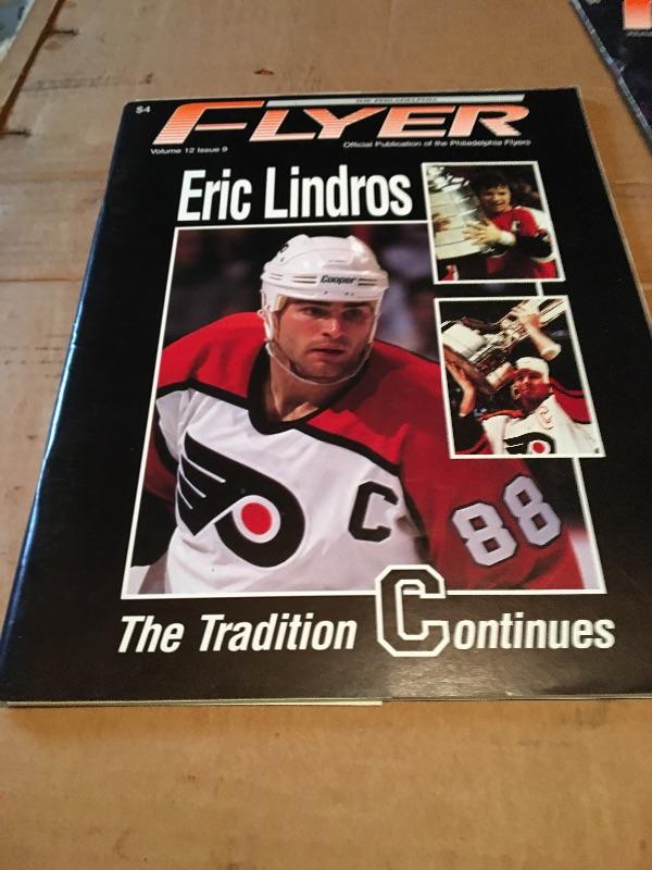 1990s ERIC LINDROSS Autograph Philadelphia Flyers with Magazine Lot. LOT 3