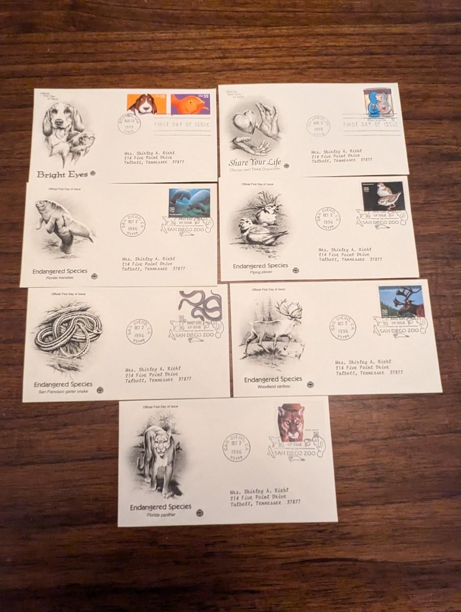 14 - 1990's First Day Issue Envelopes & Display Cards Dinosaurs Arts & Endangered Species Lot 3