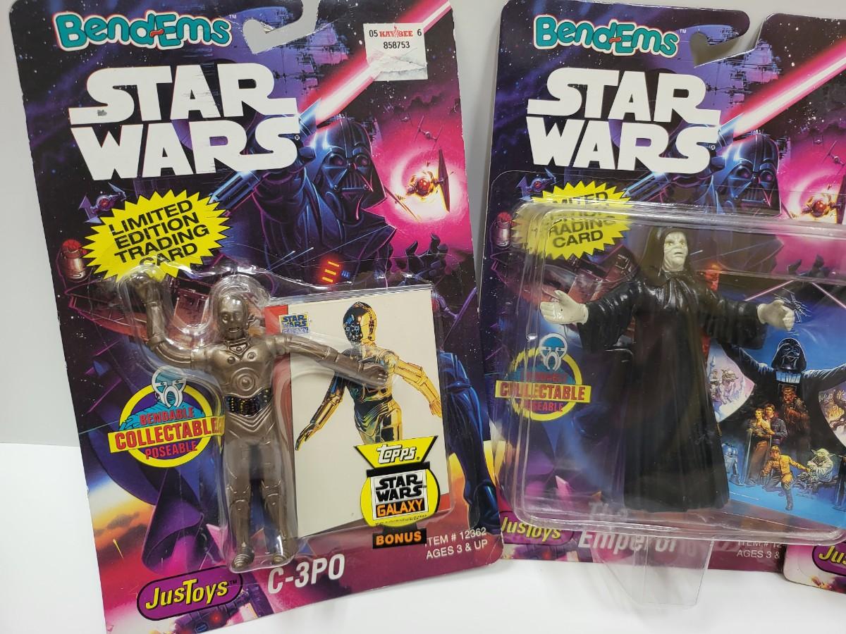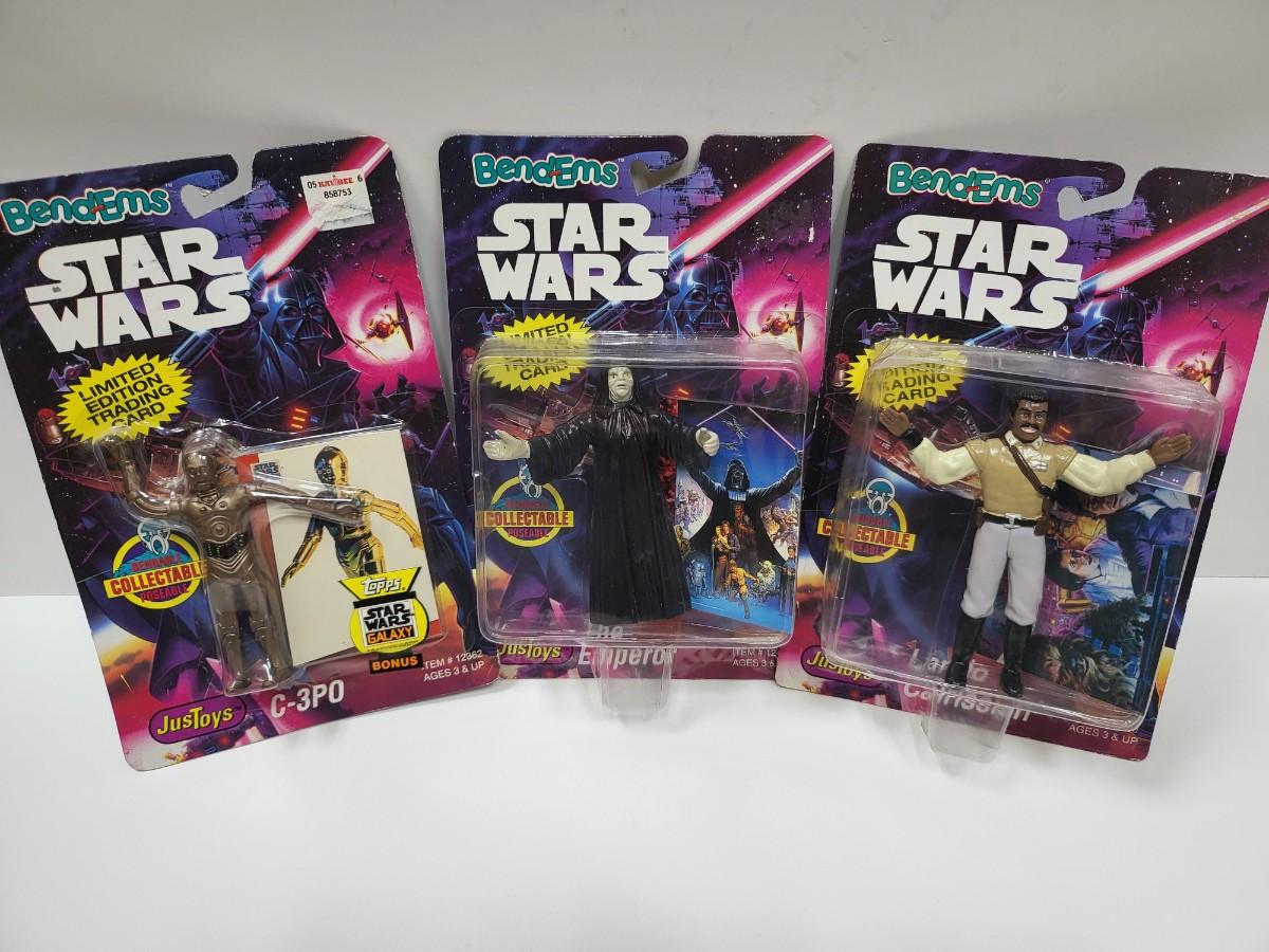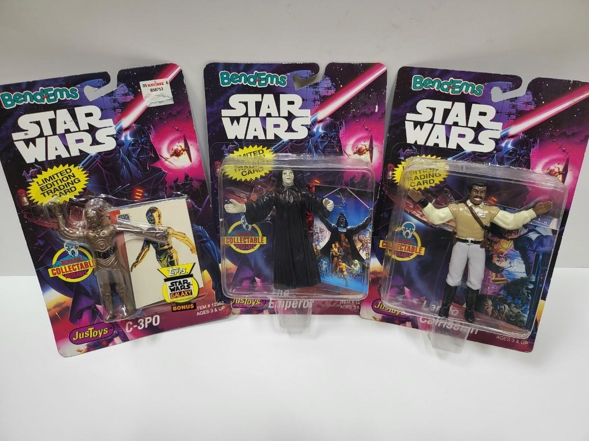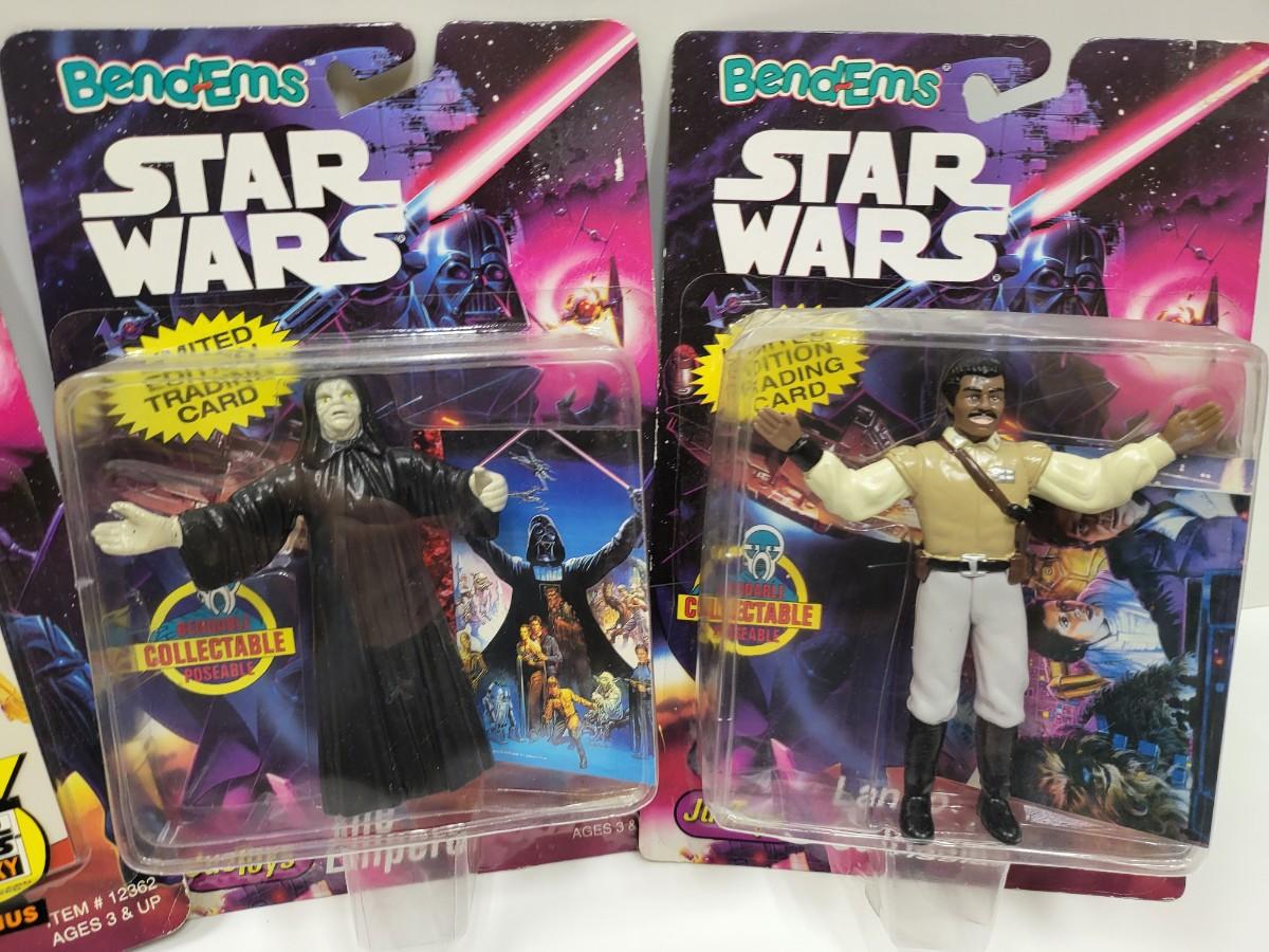 Star Wars (1993) C-3PO, (1993) The Emperor, (1994) Lando Calrissian sealed Bend-Ems figures.