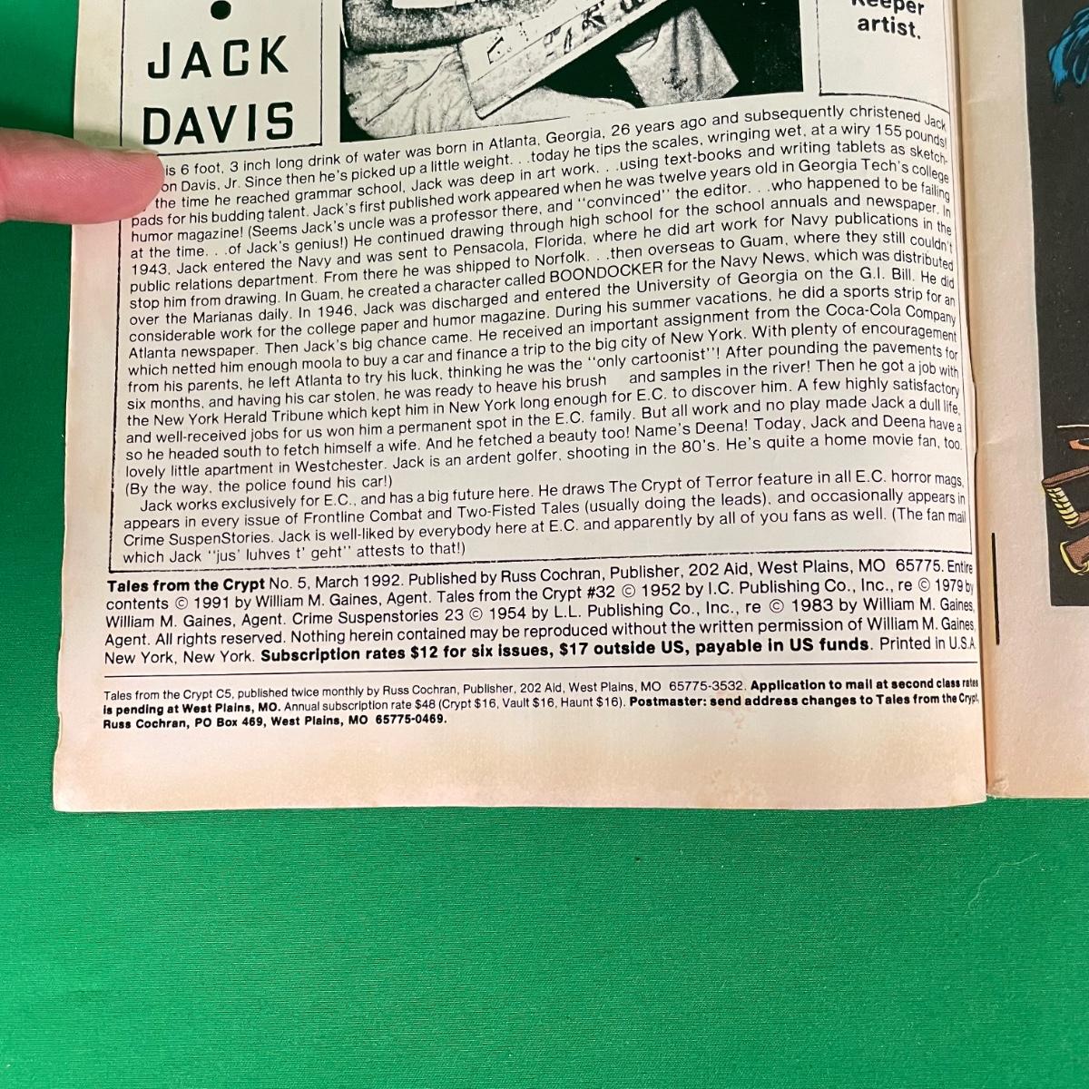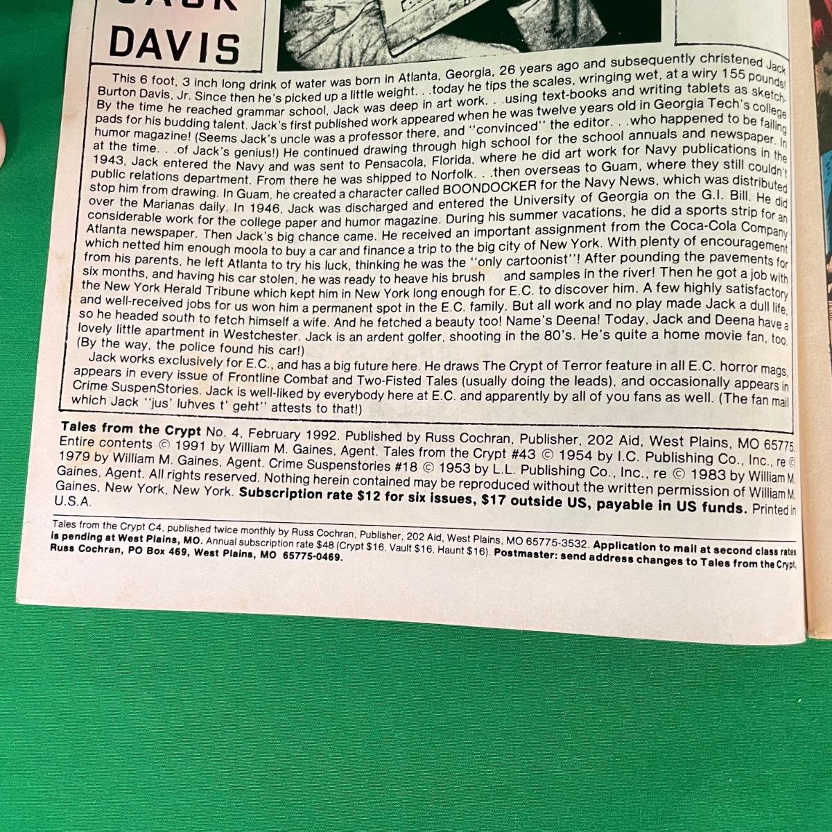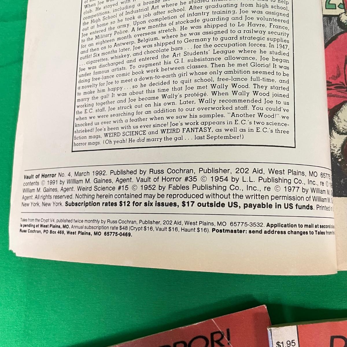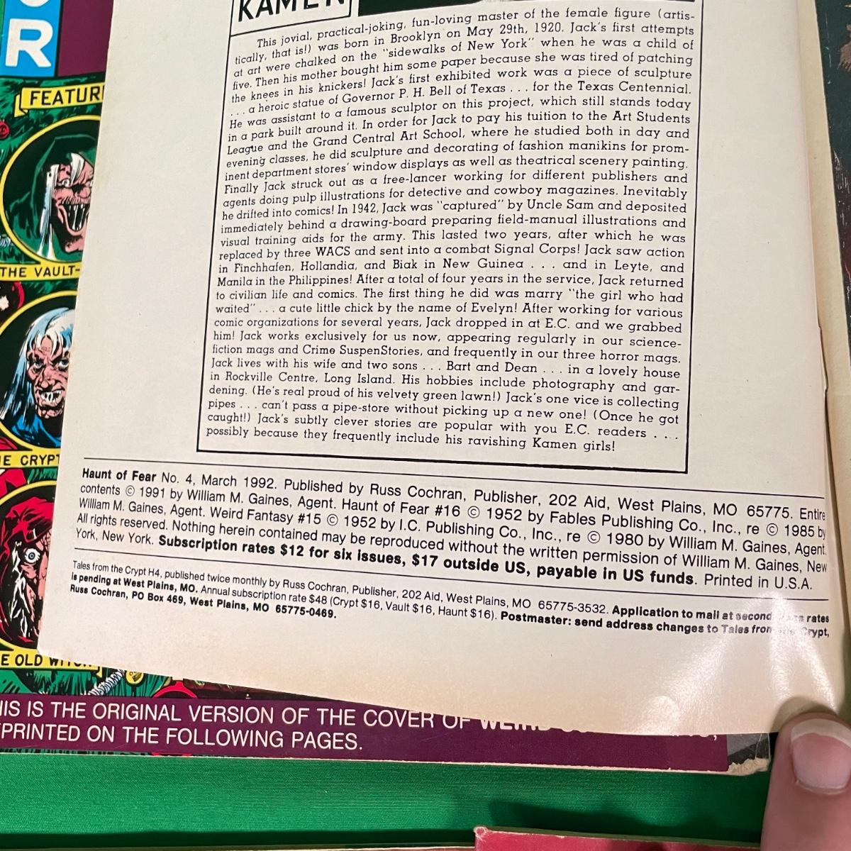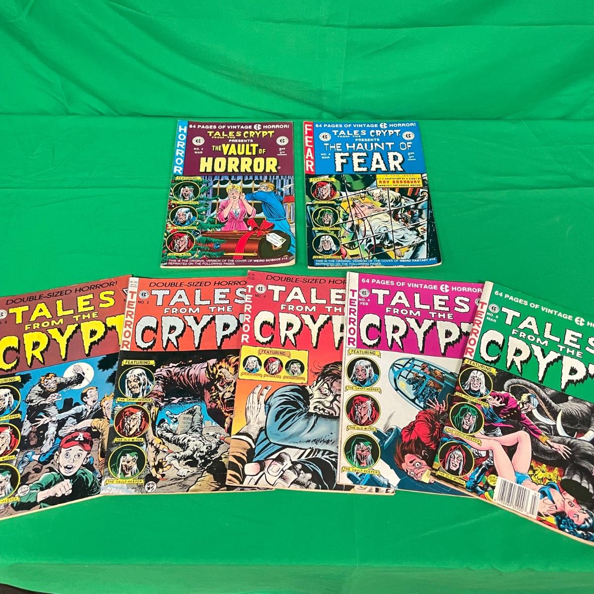 Five issues of Tales from the Crypt early volumes from 1990-1992 plus March 1992 Vol 4 of The Vault of Horror and The Haunt of Fear. Items are sold as-is. No returns or refunds. Please bid accordingly.