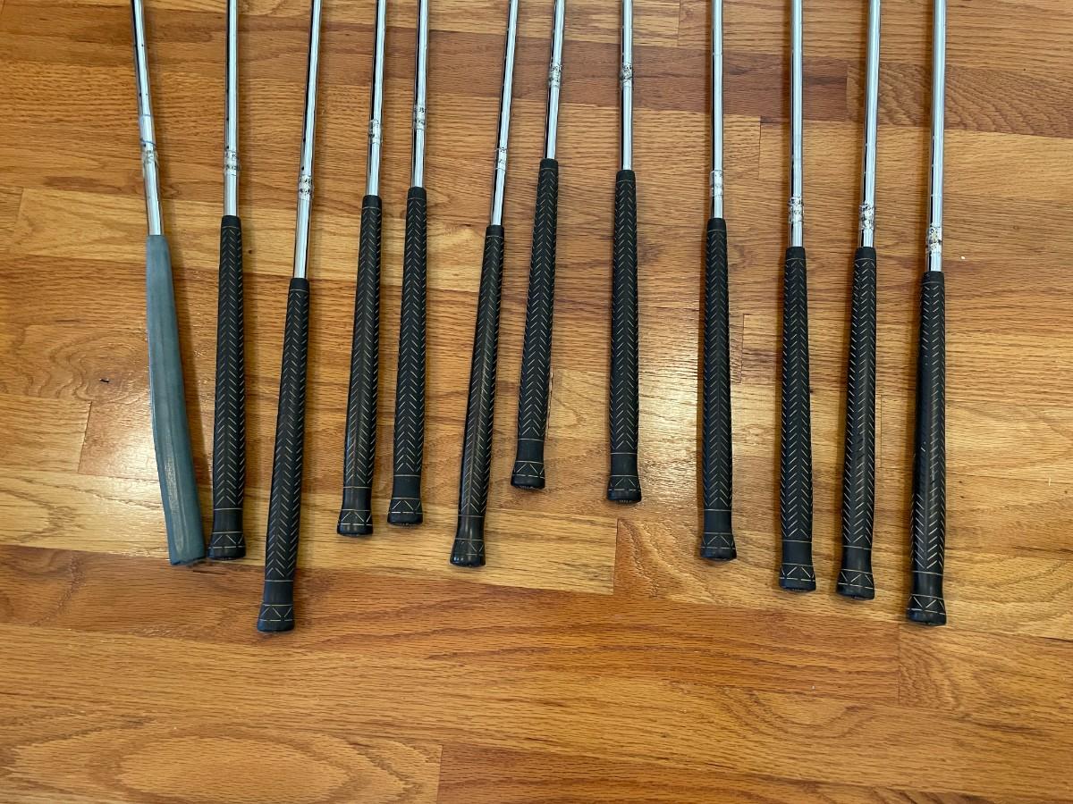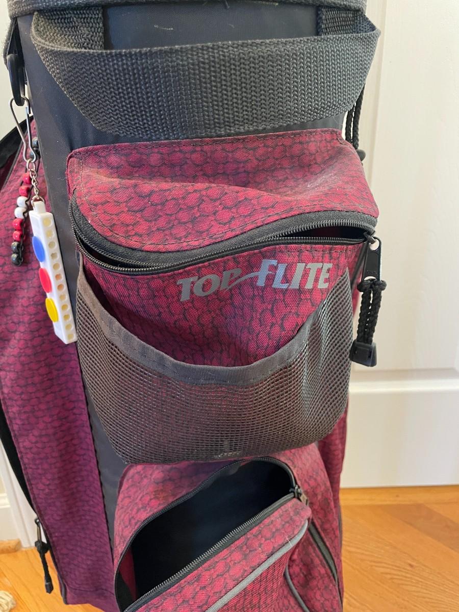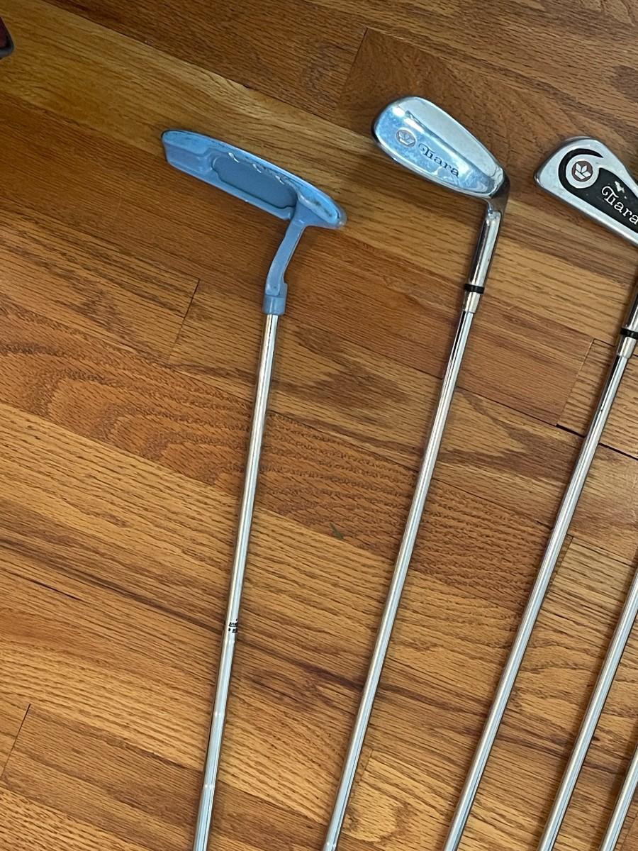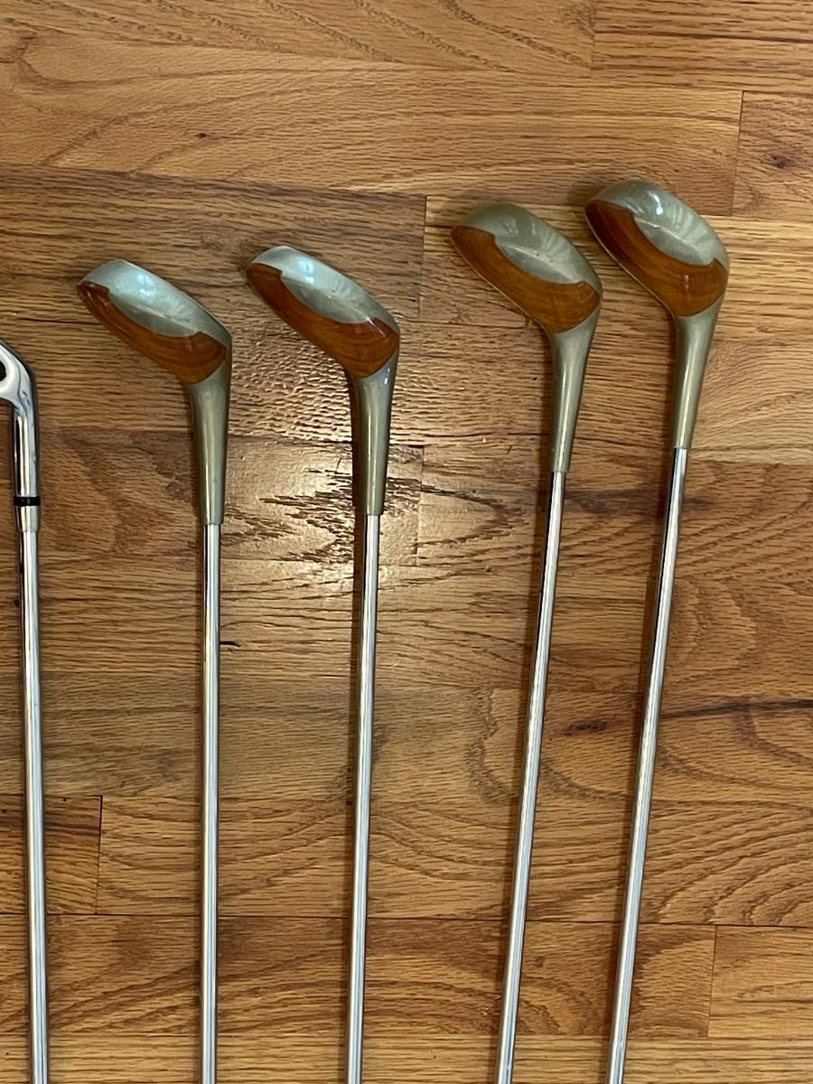 The golf clubs are early 1990s and the golf bag was late 1990s. The consignor hardly used the set. This set includes irons 4-9, woods 1,3,5,7, dual wedge, and a Knight Crown Princess putter. There are also 2 gloves, and tees, balls, bag cover, golf abacus ball marker, and a barely used Top Flite bag with a five way divider. Great starter set. LOCAL PICK UP ONLY.