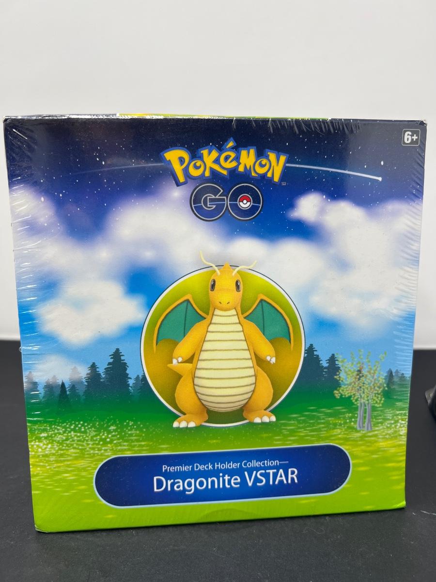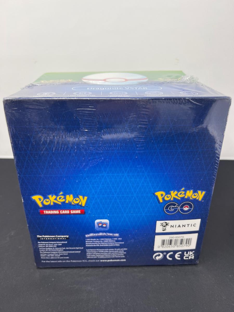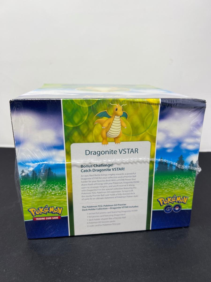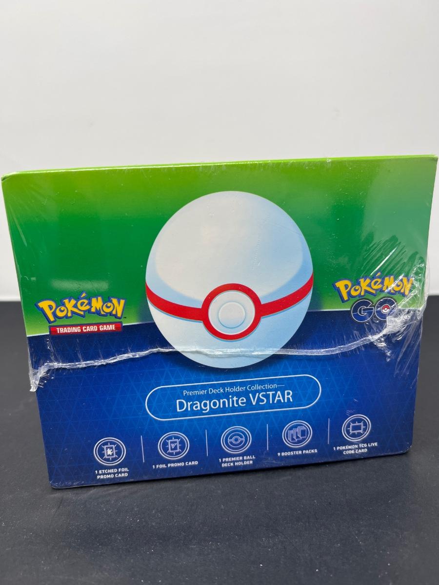 Pokémon Go Trading Card Game Cards never opened box; V Battle Deck of Pokemon Cards that have never been opened, and an opened 1991 box of Score baseball collector cards but appears there are Topps and other brand cards, as well.