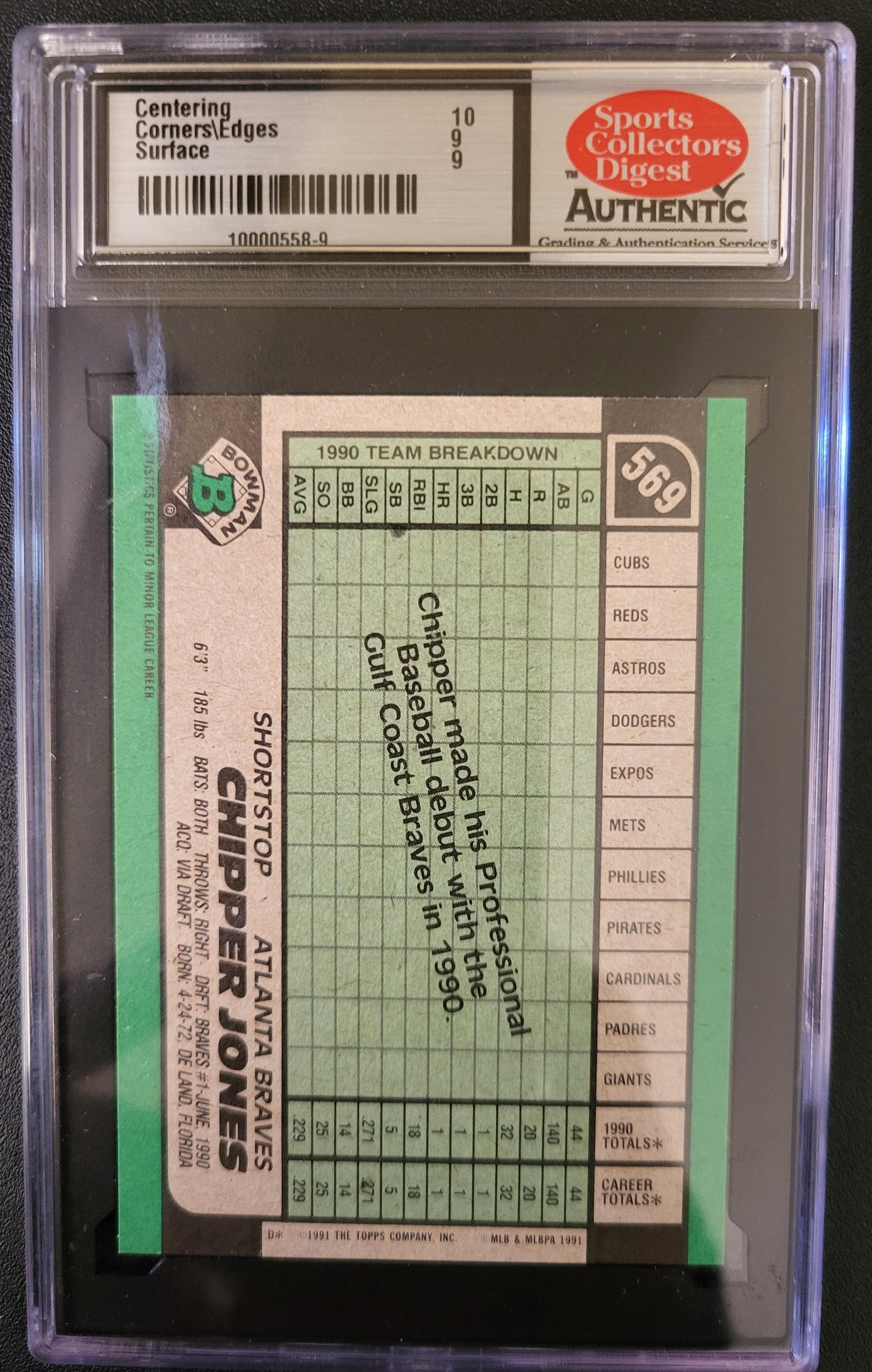 1991 Bowman Chipper Jones SCD Authentic Mint 9