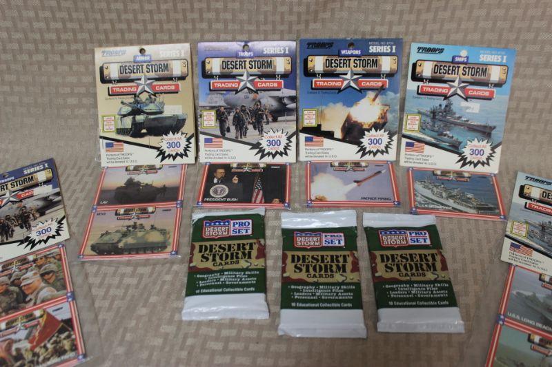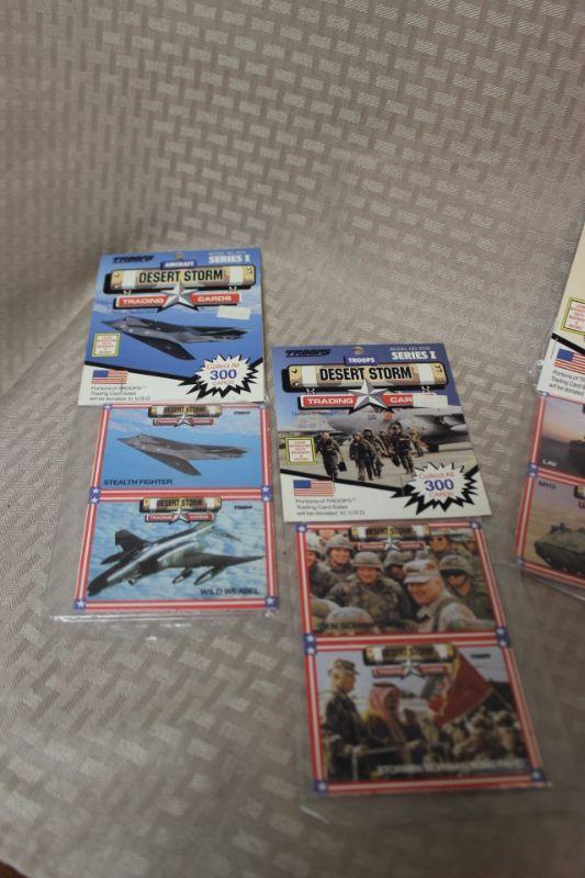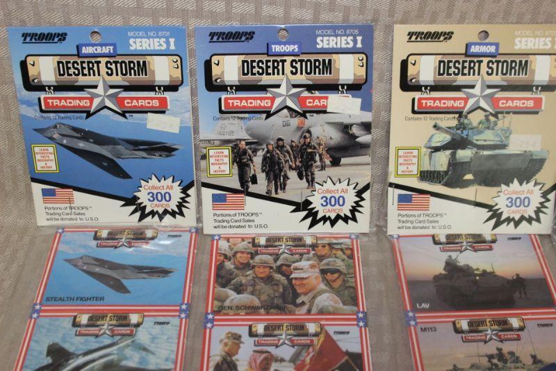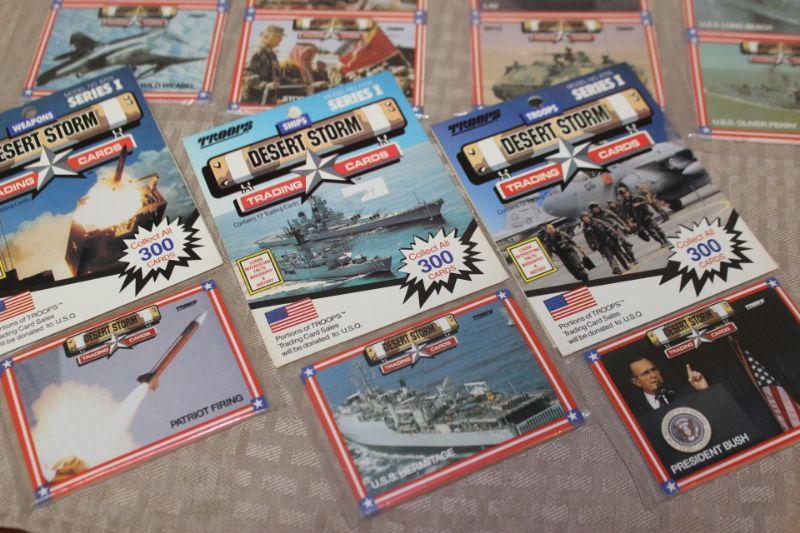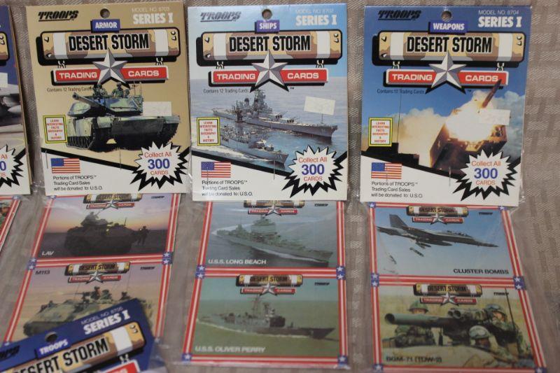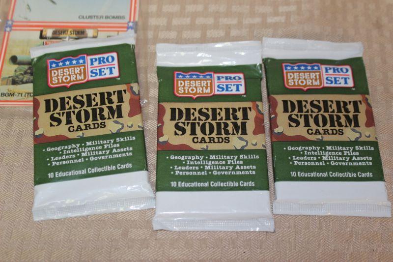11 packs of Desert Storm Trading Cards. 3 of the packs are blind mystery packs, while the others tell you what category they are. Series 1 & Pro Set.