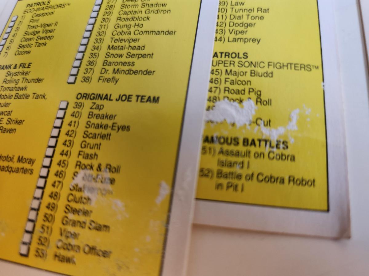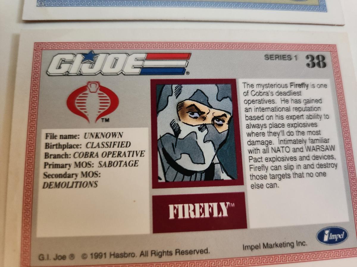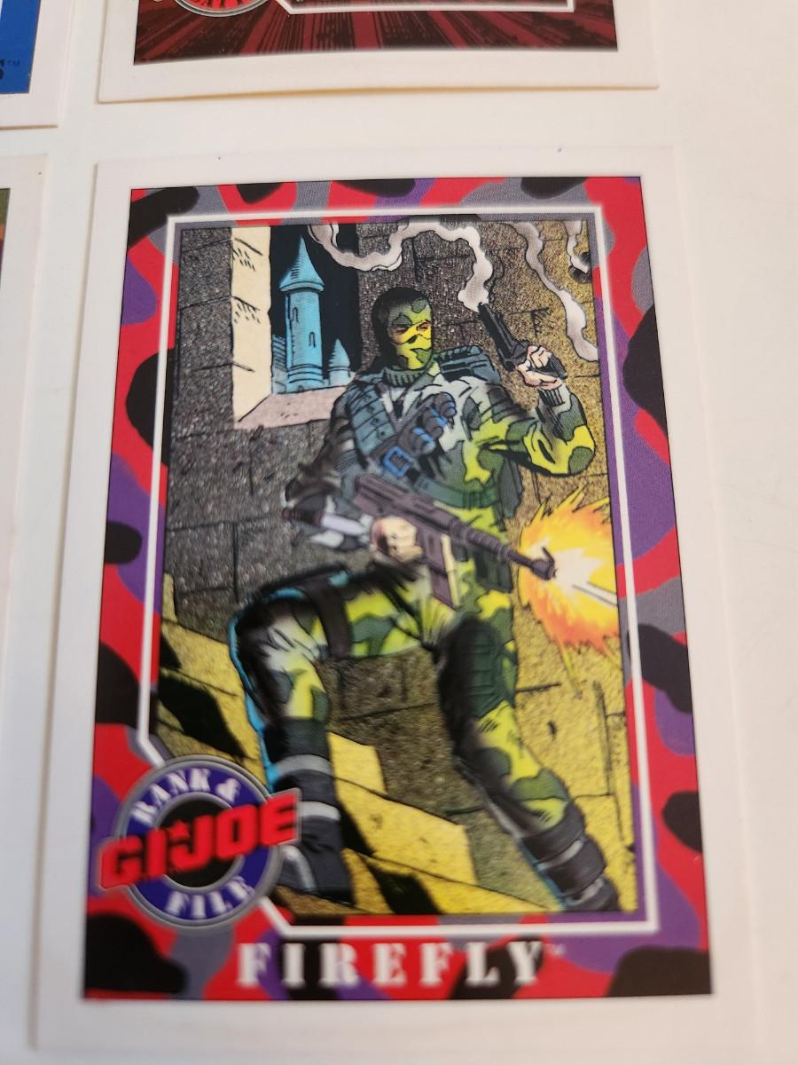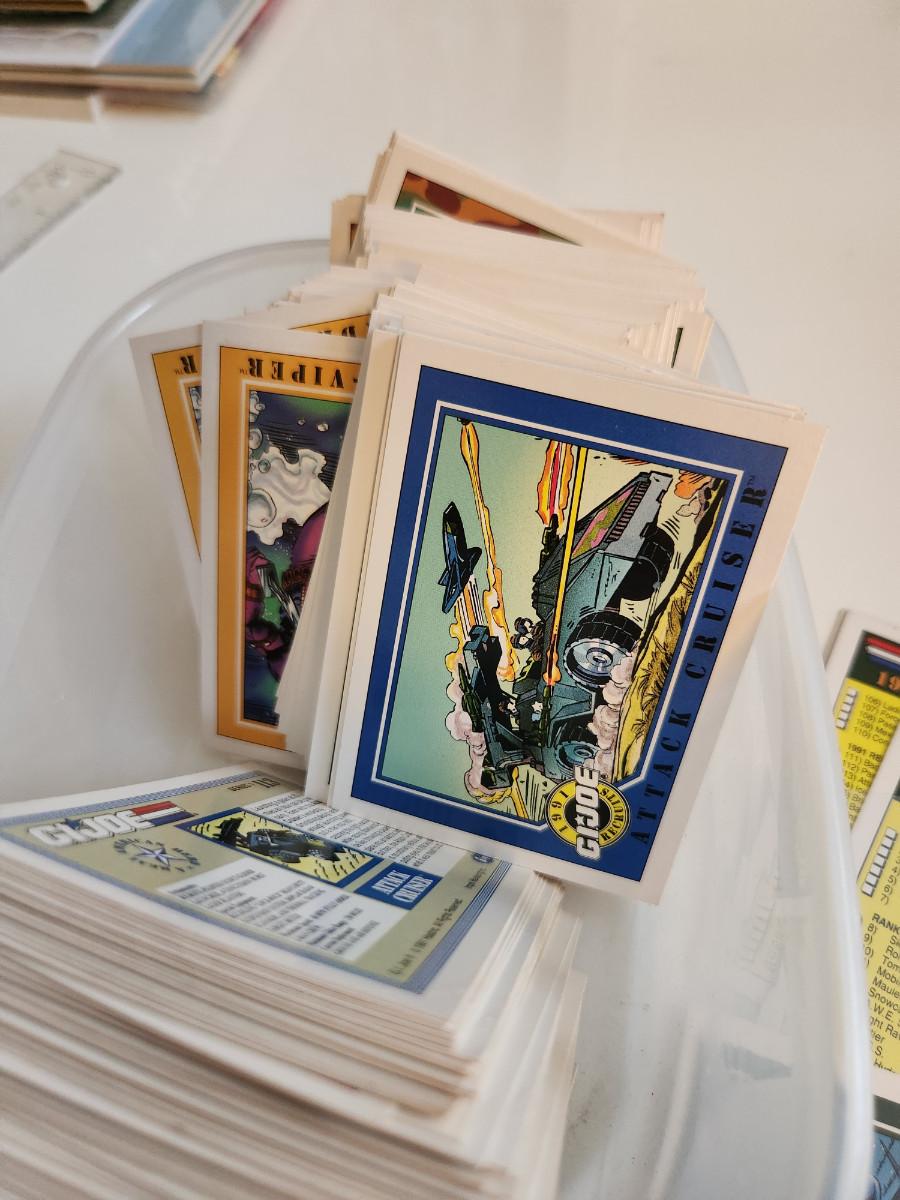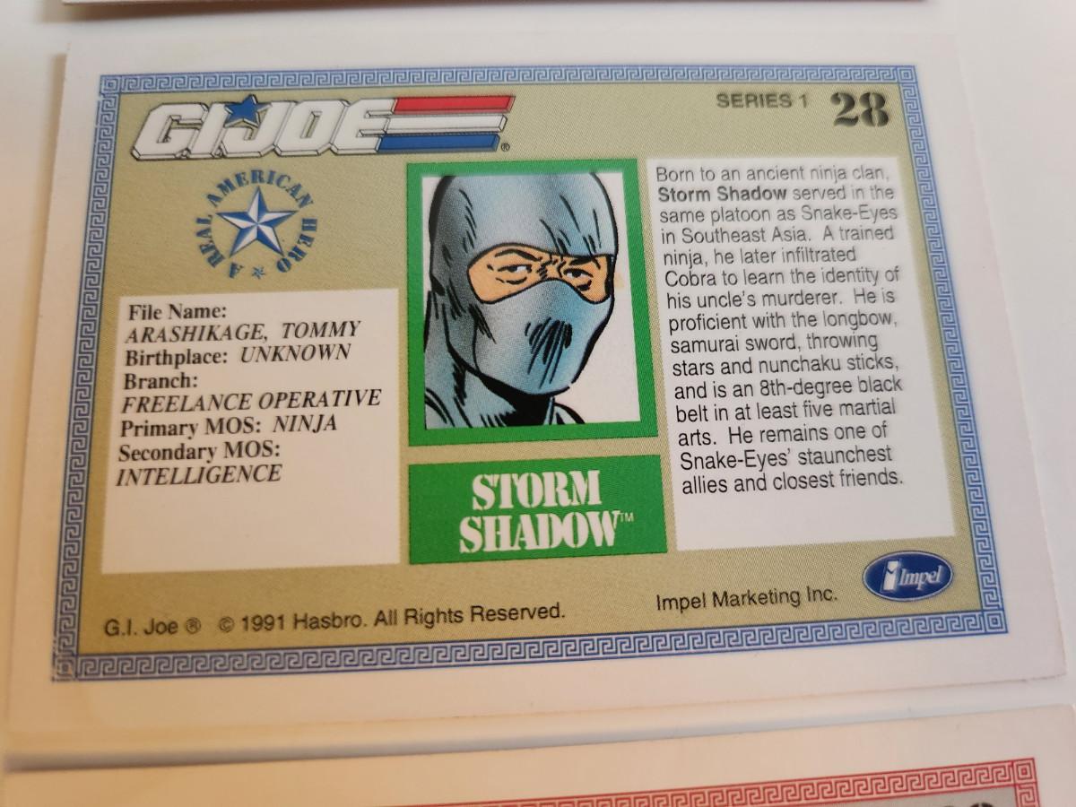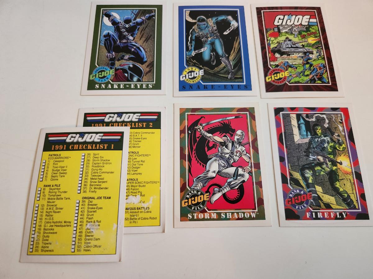 This auction lot is for a 1991 GI Joe Trading Card Collection. This 'nearly' complete set of what should be 200 cards - is probably missing about 20 cards. This set of Trading Cards was not stored in prime conditions. Our in-house collections expert says it is in OK to good condition - some cards better or worse than others - but we are not PSA, Beckett or SGA. HOWEVER, This offering does include what we understand are the 5 most desired and difficult cards to obtain. We have numbers 28, 38, 135, 154 and the ever elusive 41 Snake-Eyes. Buy it all as a lot and do with it what you will.