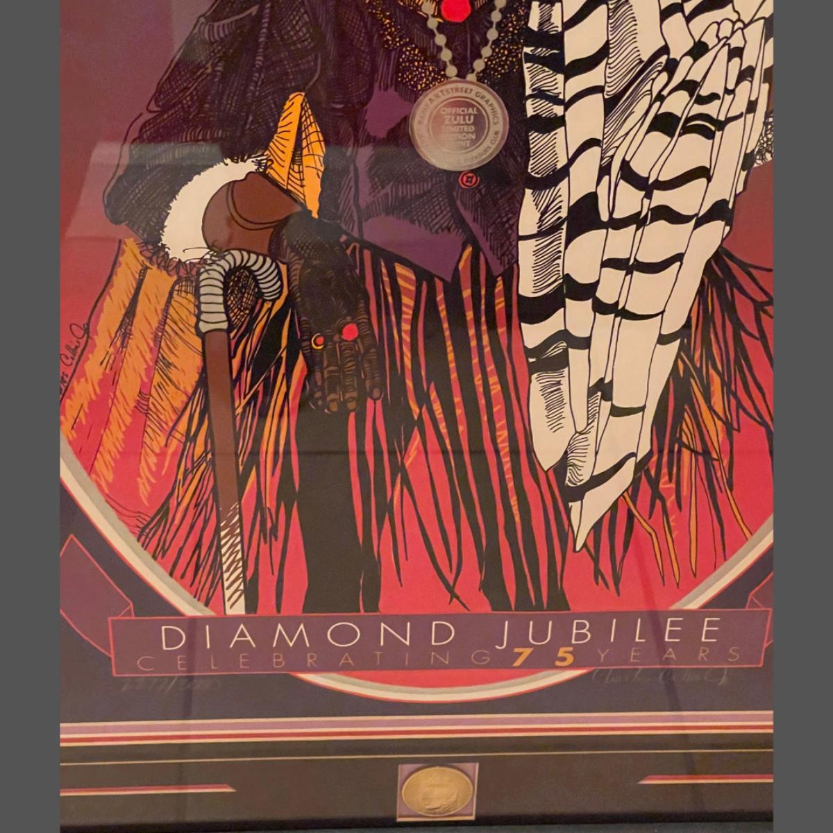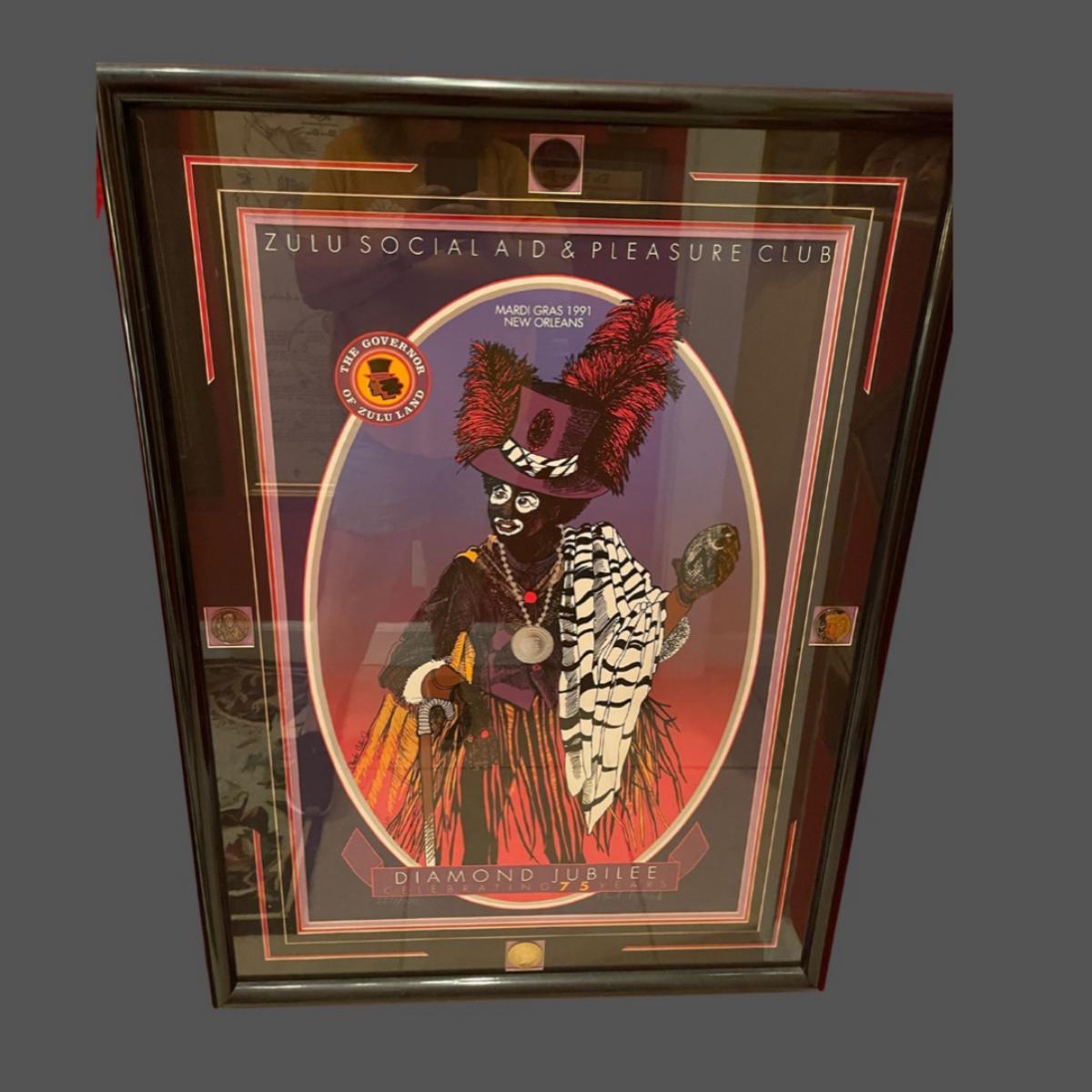 Original 1991 Golden Jubilee Krewe of Zulu Print - signed & numbered by Charles Collins, Jr. 2277/3000 Mint condition. Approximately 38” x 28”. This poster also has a collectible doubloon set in the frame. Priceless.
