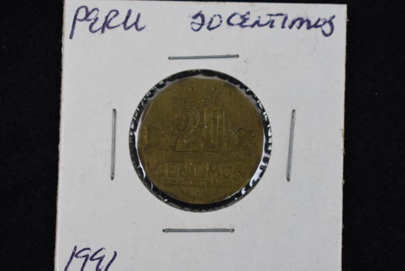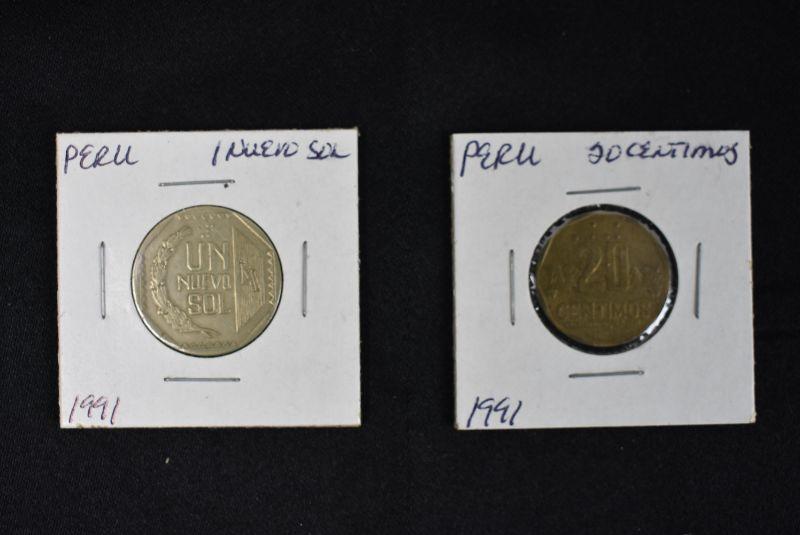 1991 Perú 1 Nuevo Sol and 1991 Peru 20 Centimos