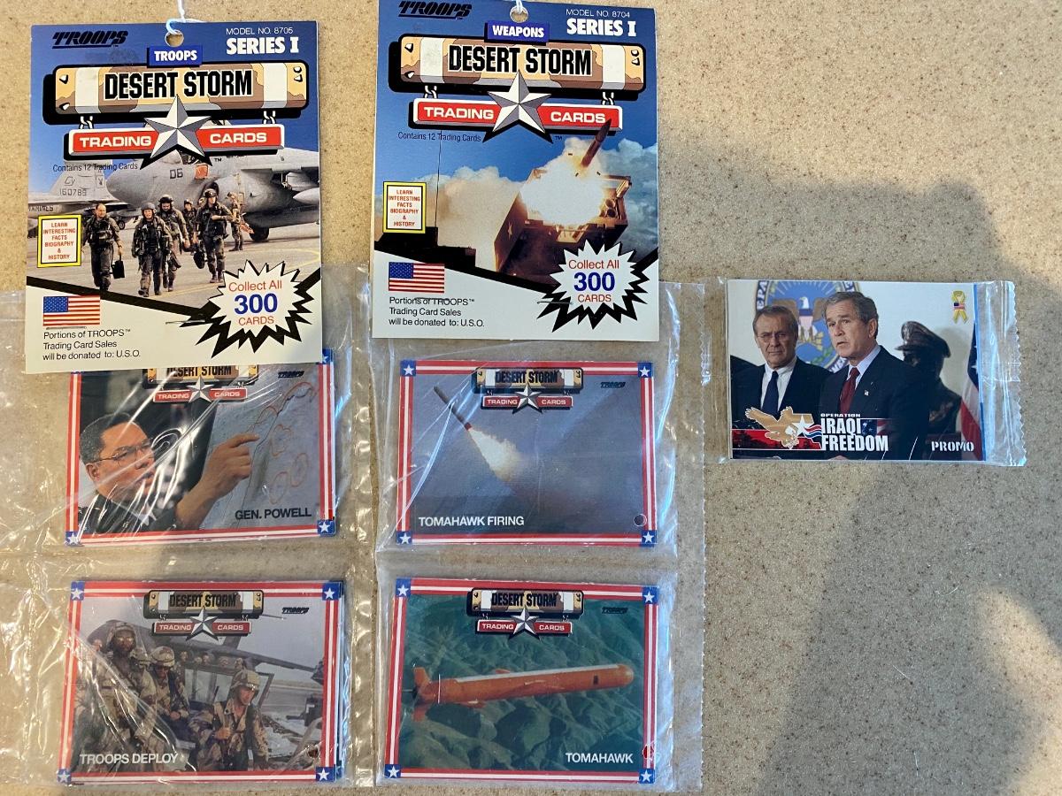Lot includes 2 sealed packs of Series 1 1991 Desert Storm cards and 1 sealed pack of IRAQUI Freedom cards.