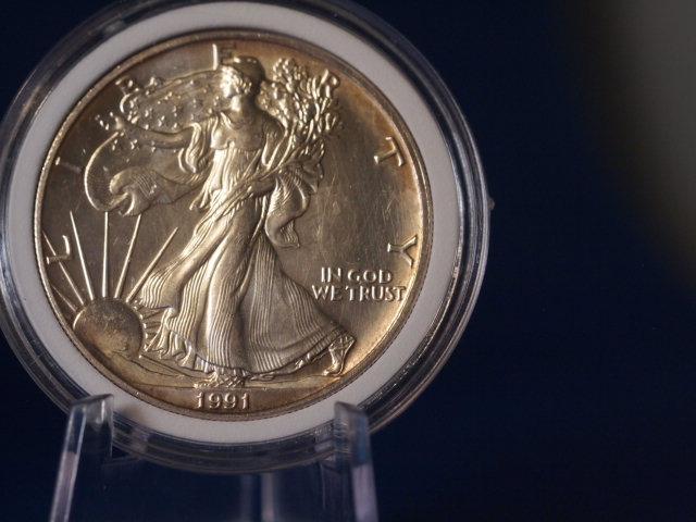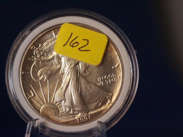 1991 Uncirculated Silver American Eagle in Air Tight Protector